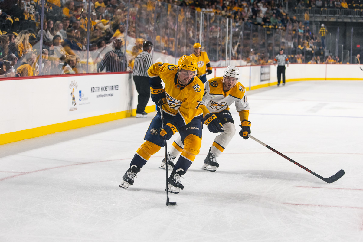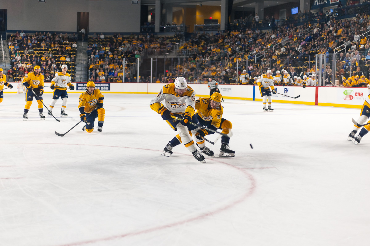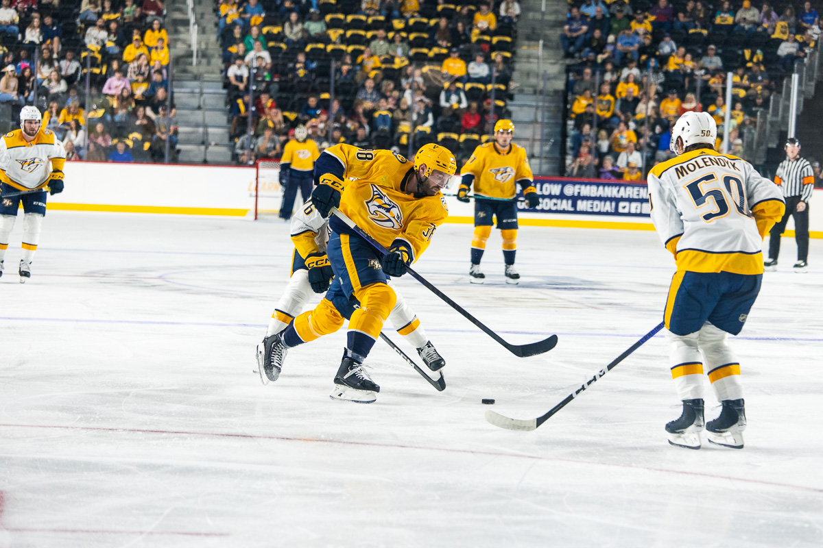 CLARKSVILLE, TN (CLARKSVILLE NOW) – The sold-out F&M Bank Arena was packed with thousands of fans as the Nashville Predators took the ice on Thursday for the Gold Star Showcase.