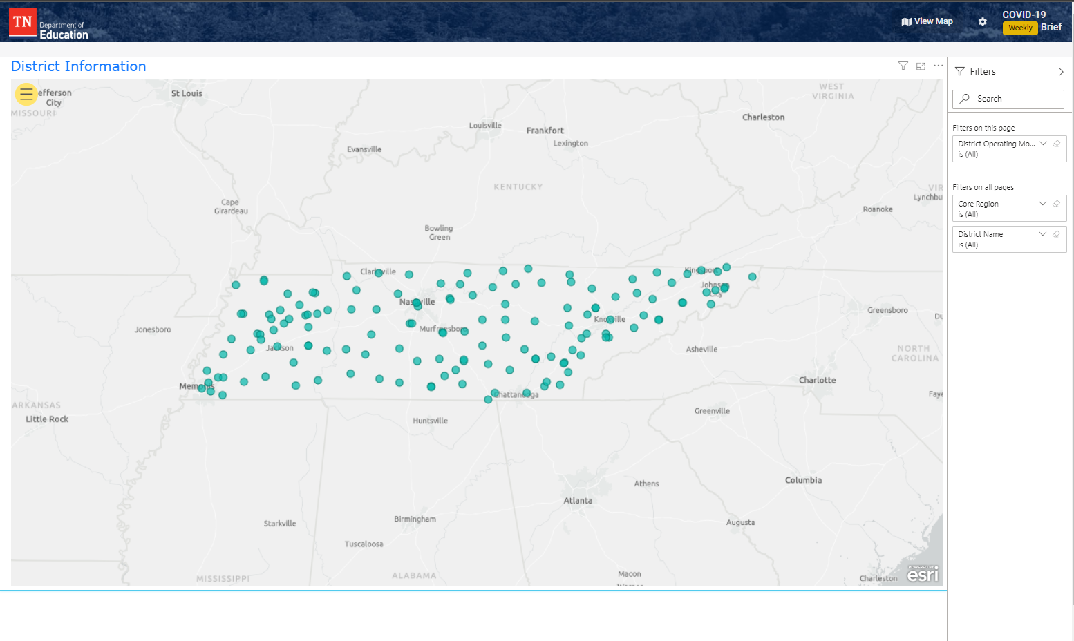 - And a menu view—A drop-down menu will allow users to quickly select a particular district of interest to reveal more information.