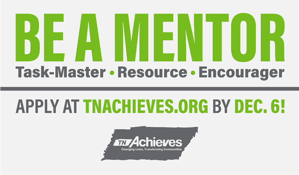 With less than two weeks until the December 4, 2020 mentor recruitment deadline, more than 1,900 mentors are still needed statewide. All tnAchieves mentors are provided training and a handbook. Anyone who would like to learn more about mentoring can visit www.tnAchieves.org/mentors/apply.