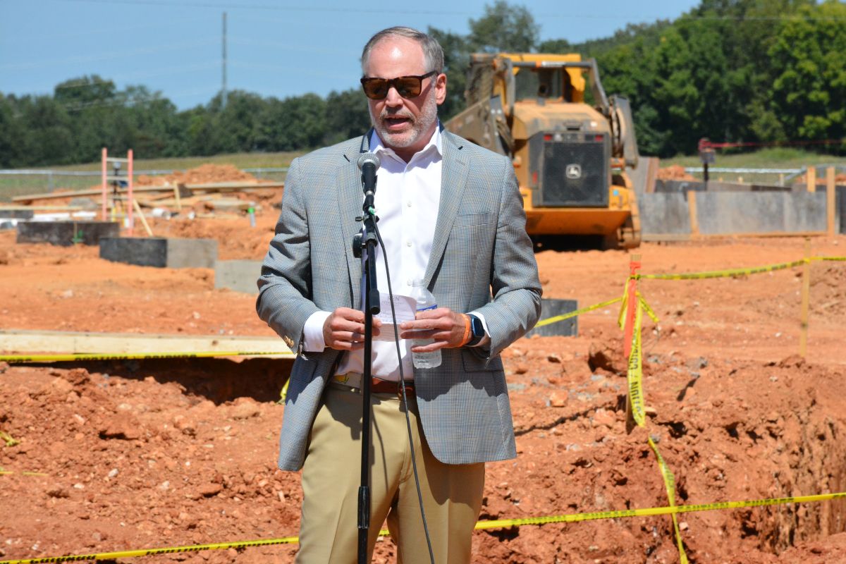 Montgomery County Mayor Wes Golden speaking at the Groundbreaking for the new Tennessee Orthopedic Alliance Clarksville (TOA), facility scheduled to open in September 2024 at 1000, Gateway Blvd. on Sep. 13, 2023. (Lee Erwin)