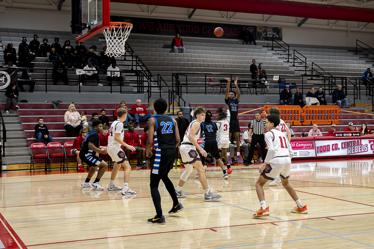 CLARKSVILLE, TN (CLARKSVILLE NOW) – The Todd County Rebels hosted the Fort Campbell Falcons for the first round of the Todd County Battle of the Border Tournament on Friday. The Rebels built a lead early, and never trailed in a 63-46 win.