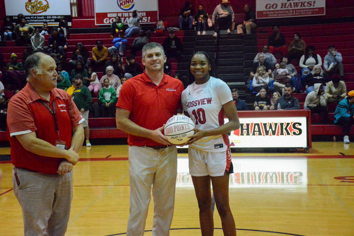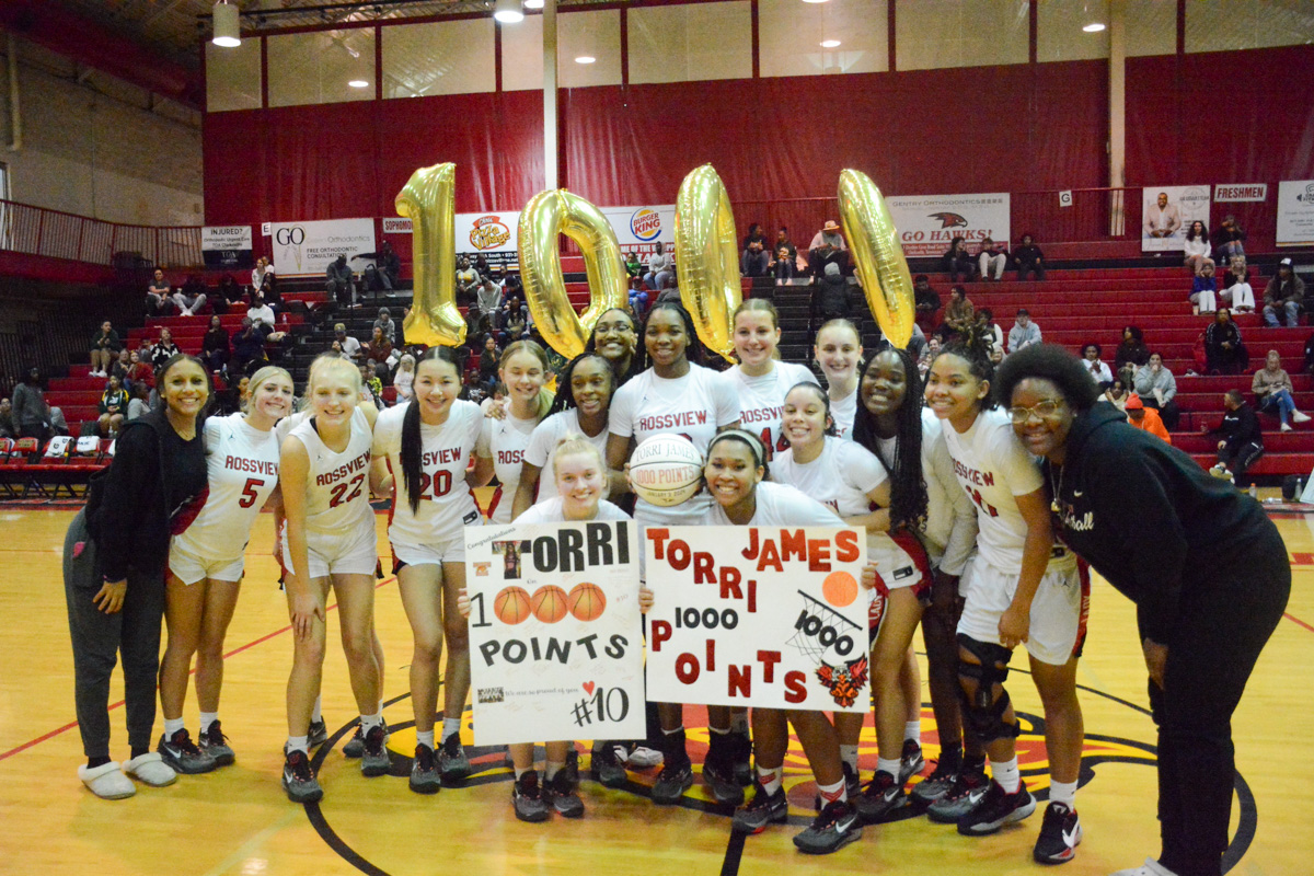 A minute and a half into the second quarter of the Rossview High vs. Northwest High girls’ basketball game, James broke away on a fast break for a layup, scored her 1,000th point, then was quickly mobbed by her teammates, and given a standing ovation by the crowd.