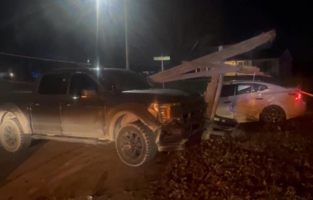 At about 7 p.m., a white sedan and a grey pickup truck crashed at Peachers Mill and Northwood Terrace, according to Clarksville Now news partner Dash 10 Media.