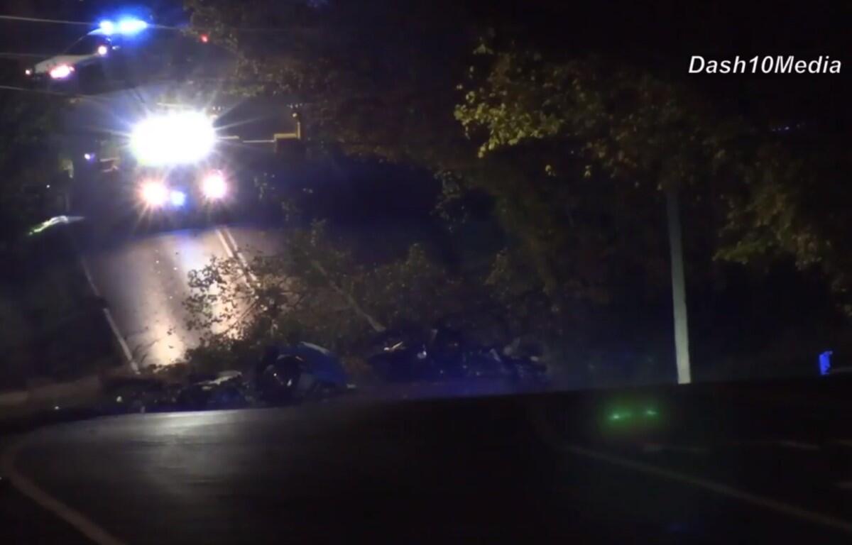 Vehicle debris and a portion of the tree blocked Memorial Drive, which was still closed as of 7:15 a.m.