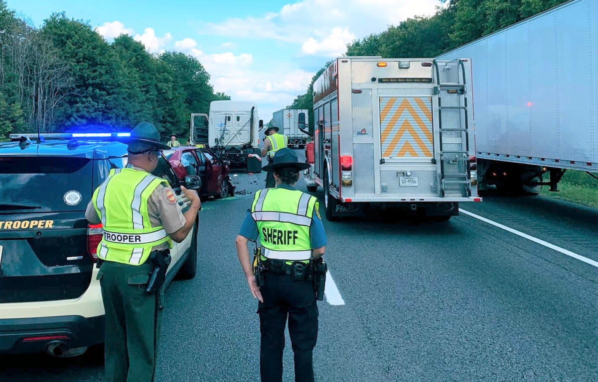 At 4:40 p.m., the eastbound lanes were closed at mile marker 14.4 due to a major injury collision between a semi and a four-door sedan, according to the Montgomery County Sheriff’s Office.
