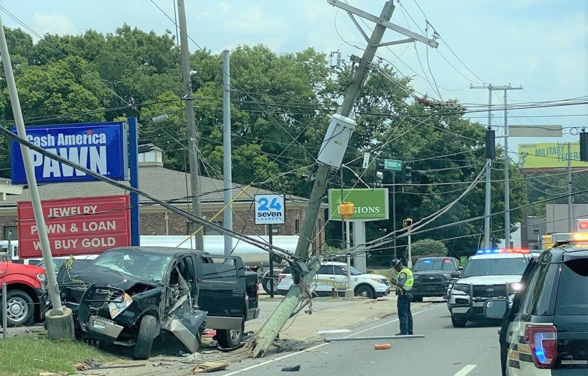 At about 12:30 p.m., a pickup truck crashed into a utility pole on Providence at the Peachers Mill intersection, according to Clarksville Police Sgt. Charles Gill.