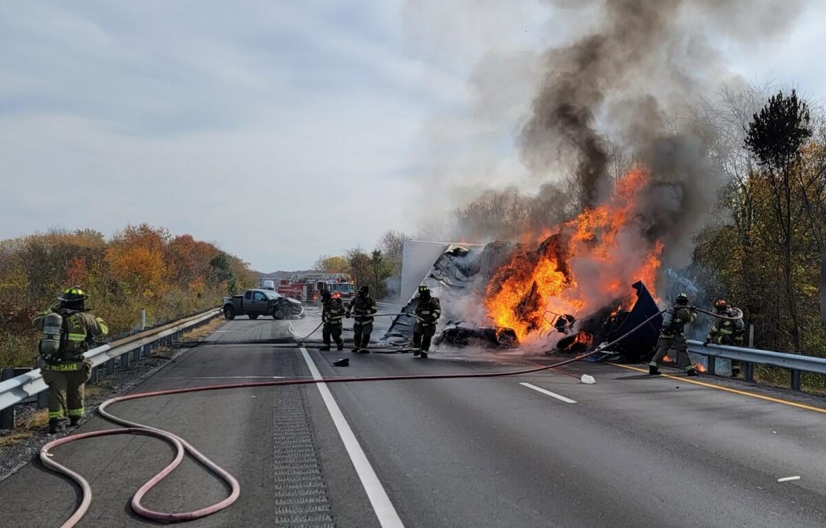 CLARKSVILLE, TN (CLARKSVILLE NOW) – A crash involving two semi-tractor-trailers and a pickup truck now has traffic backed up on I-24 West at mile marker 5.