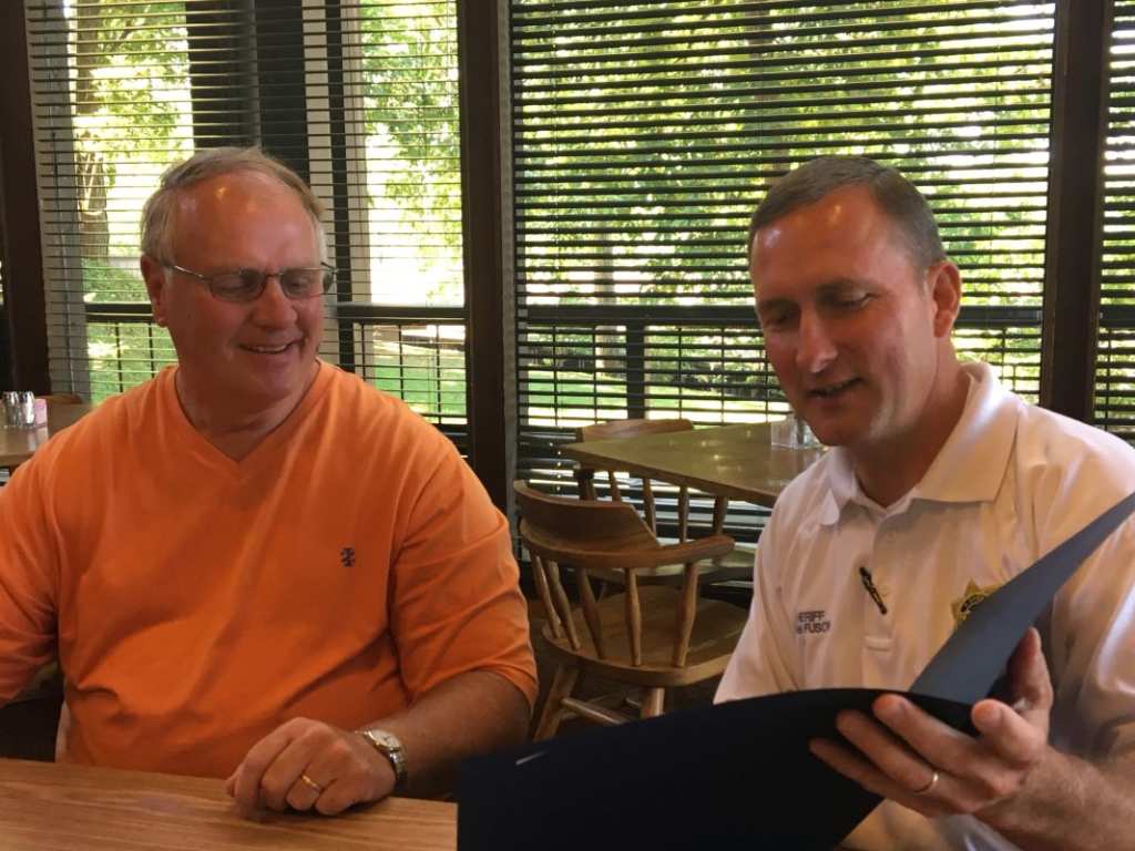 Sheriff John Fuson presented Armstrong with his service weapon, retirement badge, commemorative flag, plaque, and mayor’s proclamation in a private ceremony.