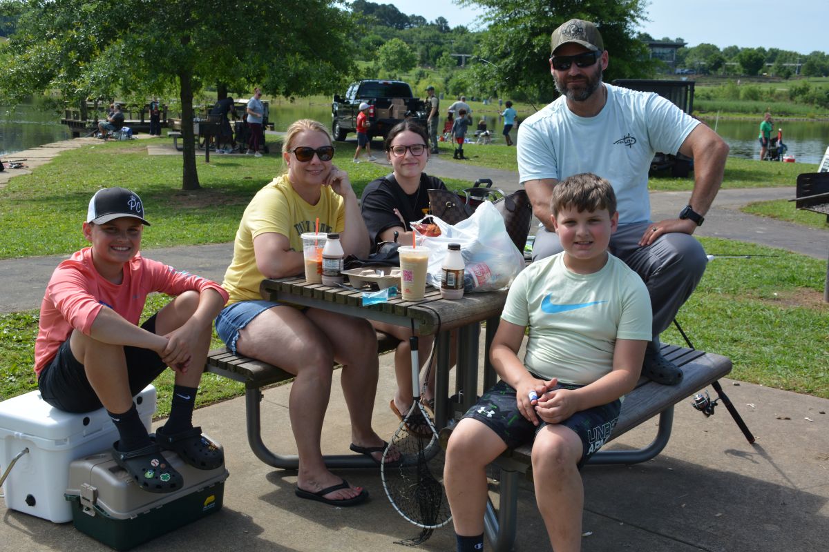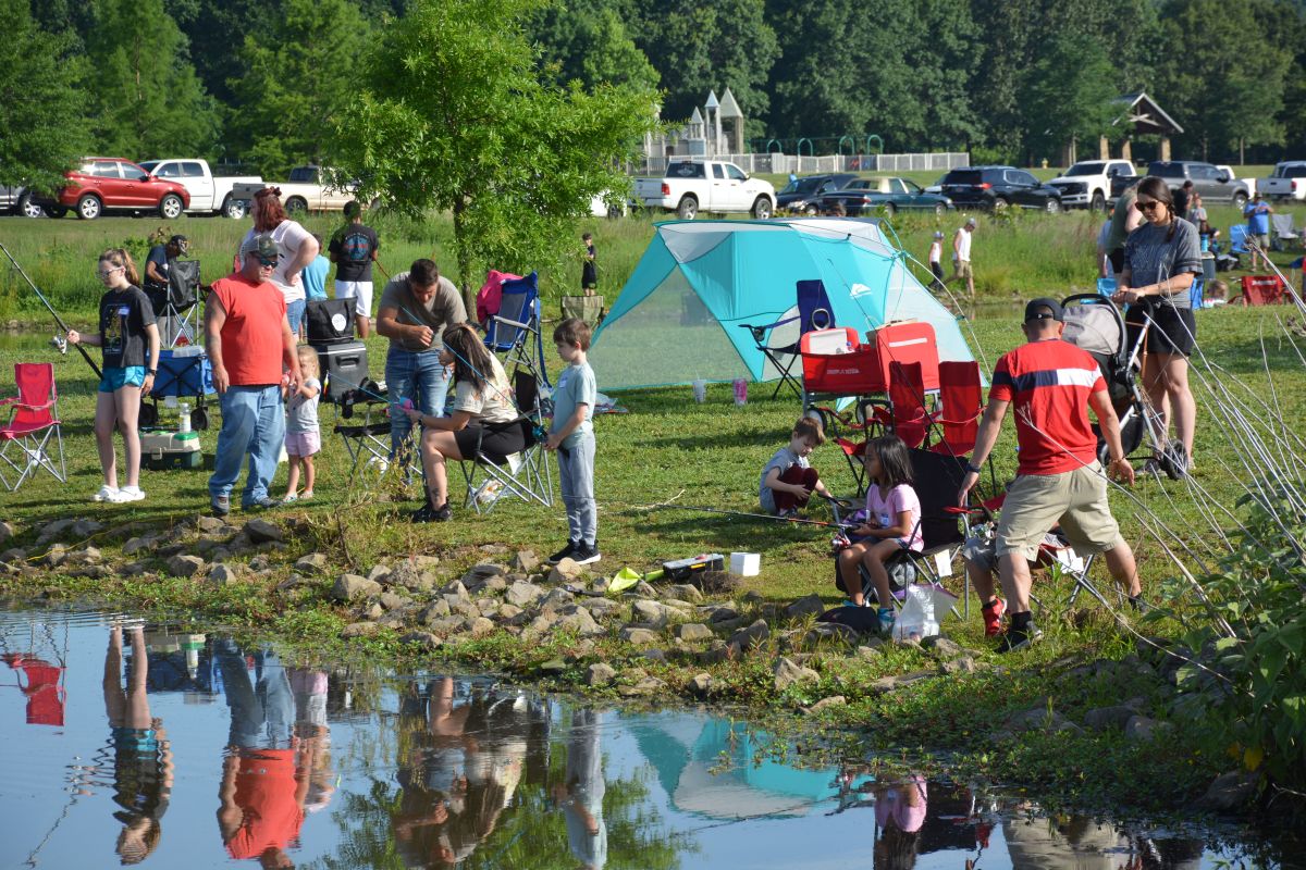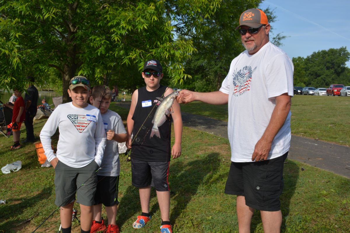 The Montgomery County Bass Club at the TWRA Annual Youth Fishing Rodeo for Free Fishing Day in Tennessee at the Liberty Park pond on, June 11, 2022. (Lee Erwin)
