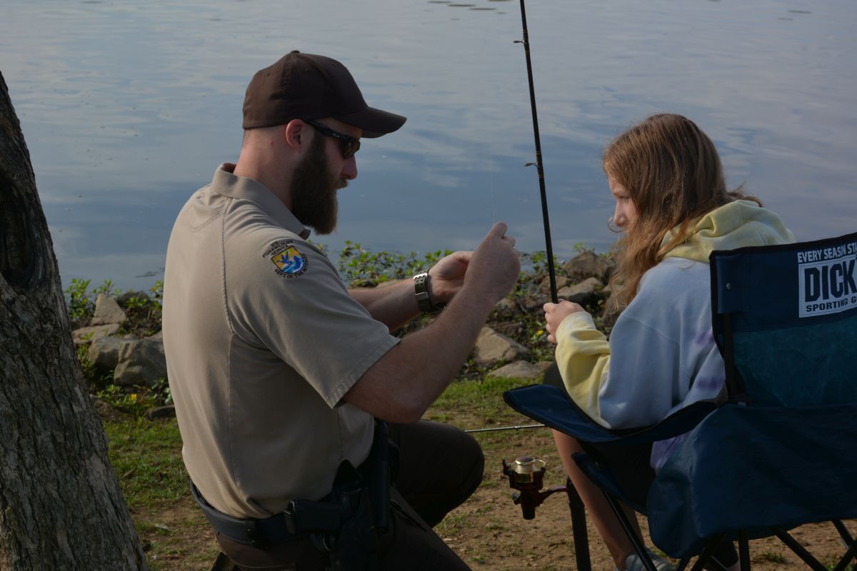 Tennessee Wildlife Officer, Montana Michelson, at the TWRA Annual Youth Fishing Rodeo for Free Fishing Day in Tennessee at the Liberty Park pond on, June 11, 2022. (Lee Erwin)