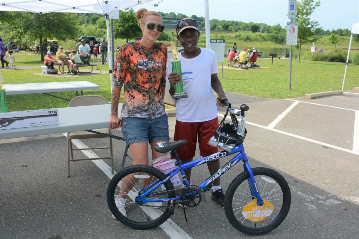 Prizes were given to the boy and girl who caught the biggest fish, and the most fish, and door prizes were awarded to the kids throughout the day.