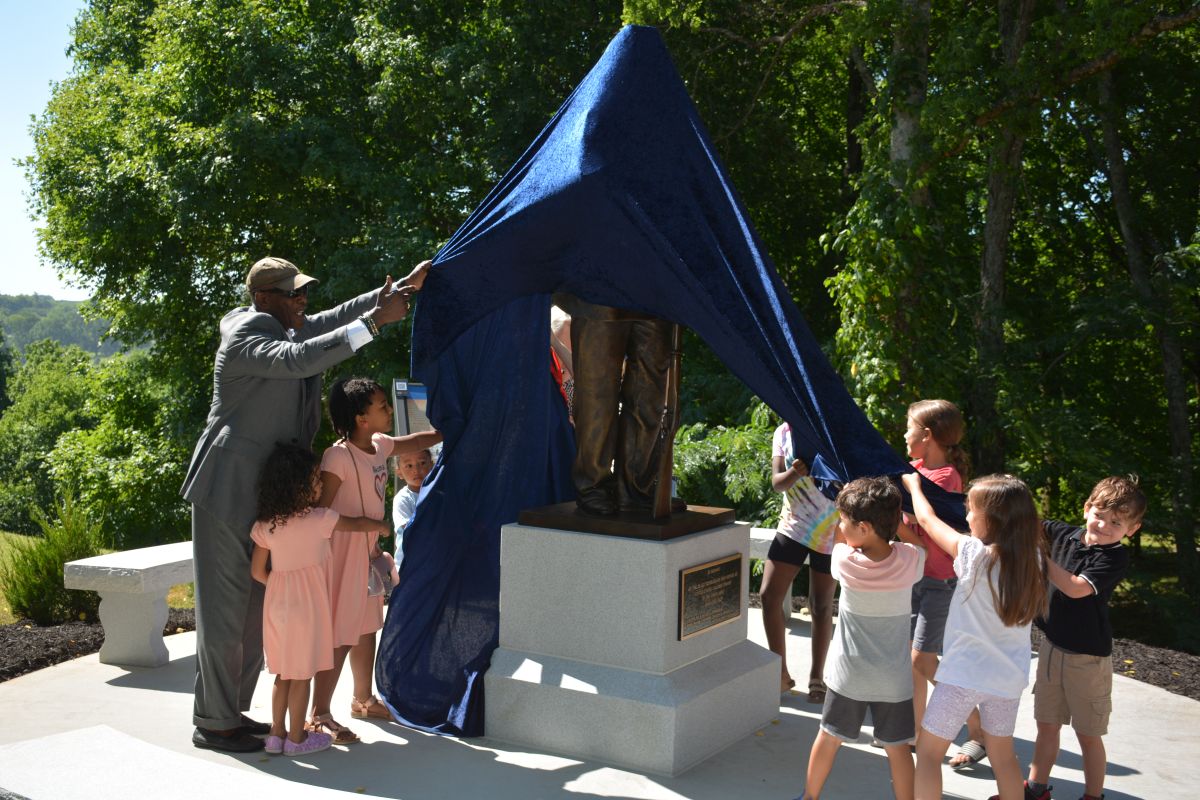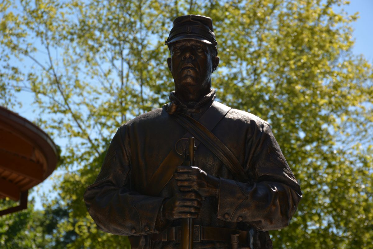 The model for the sculpture was Bill Radcliffe, a Navy veteran, firefighter, and U.S. Colored Troops Reenactor who lives in Nashville.