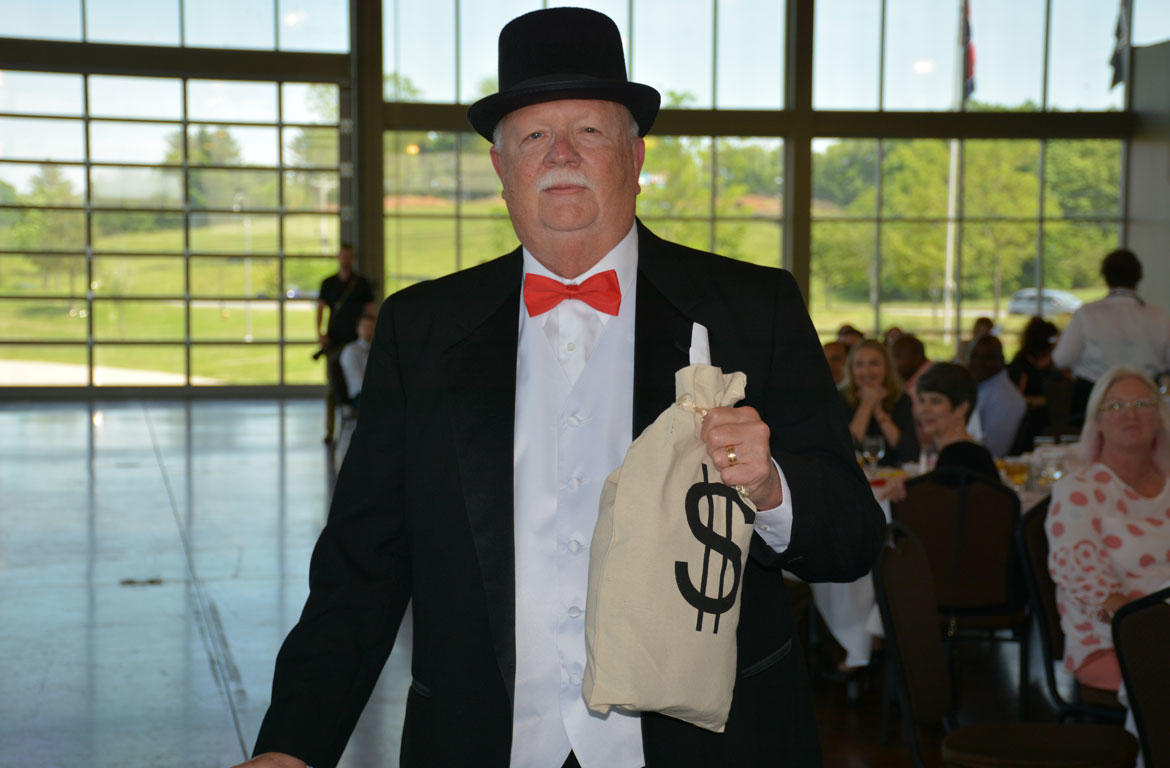 Reminiscent of the shared history, Board President Garnett Ladd and Past President Don Shrader delivered the news of this year’s fundraising total, $1,113,249.72 Dressed as the Monopoly mascot Uncle Pennybags and chauffeured by Ladd in a vintage car akin to the game piece.