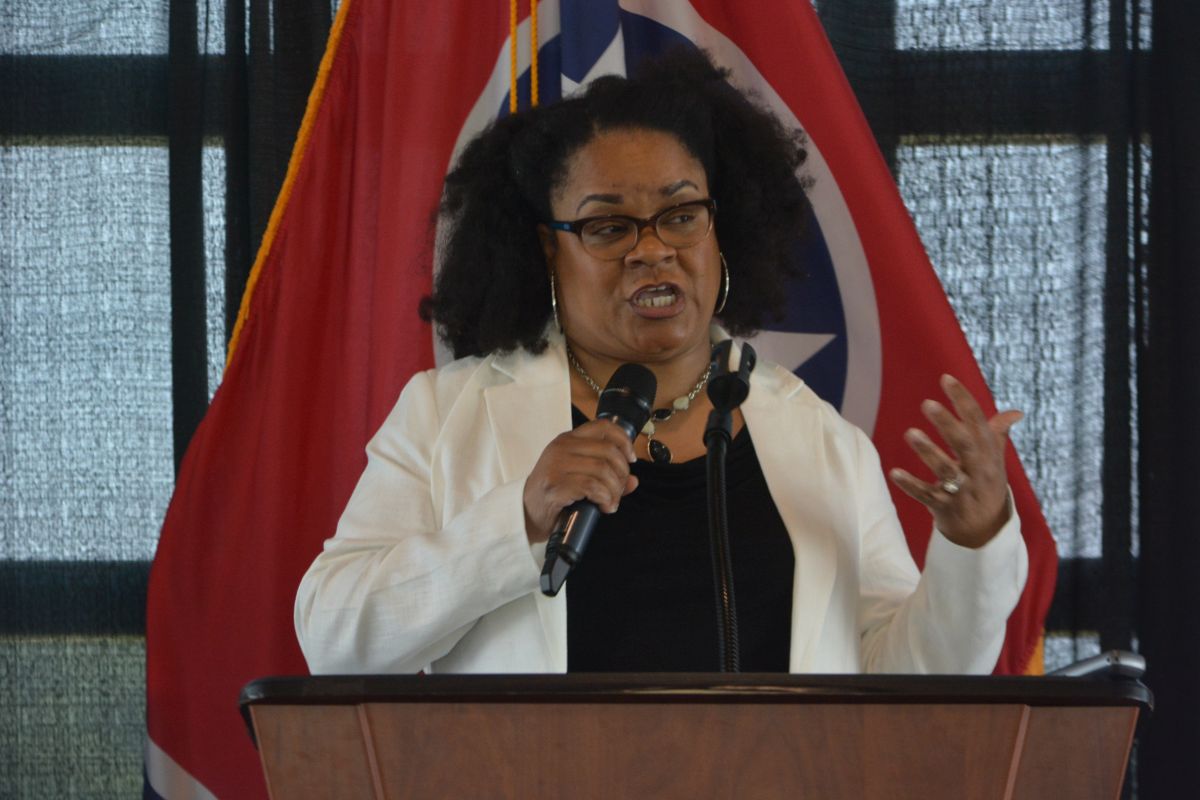 O’Neal Wiggins speaking at the United Way of the Greater Clarksville Region Annual Campaign Celebration & Luncheon on May 22, 2023. (Lee Erwin)