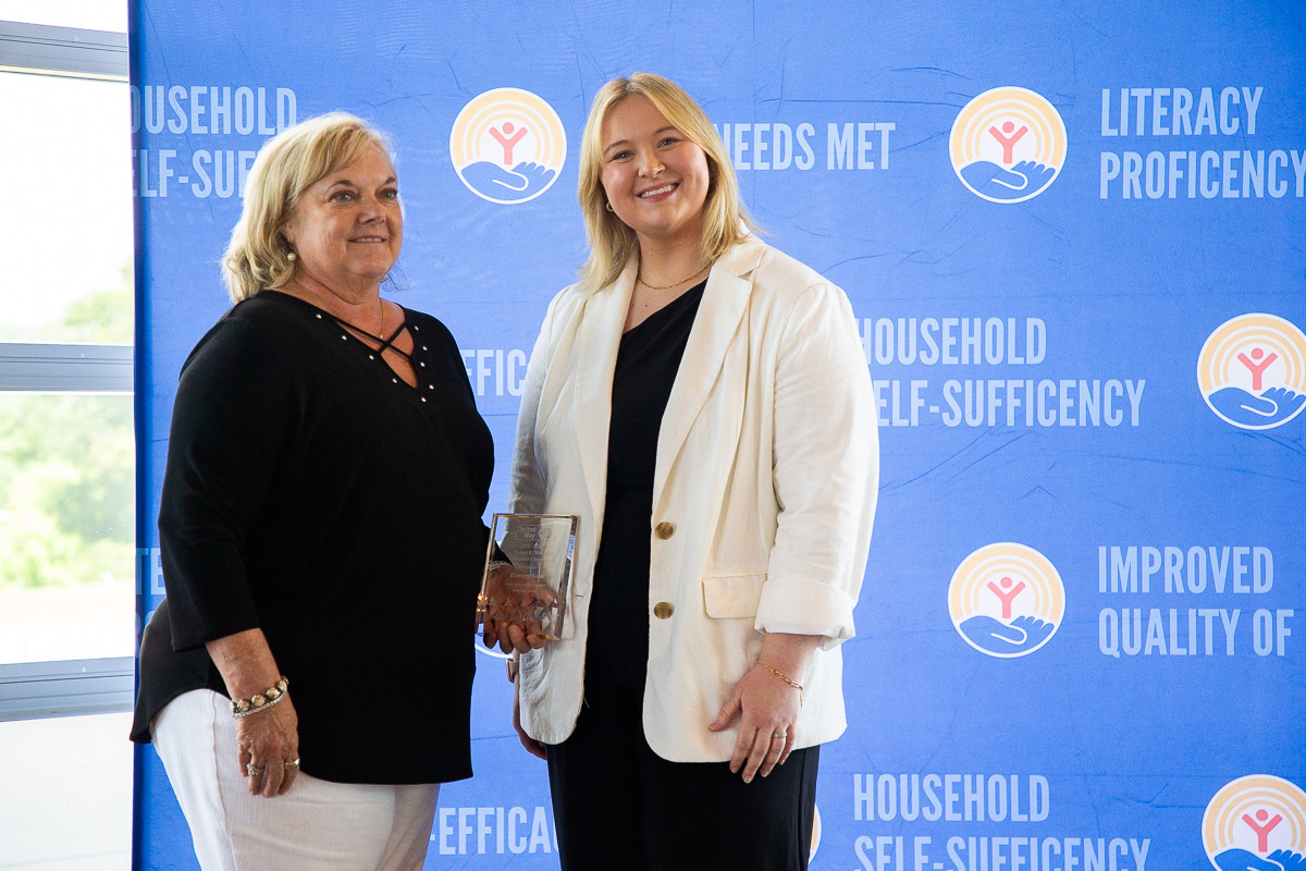 Lauren Winters receives an award at the United Way of the Greater Clarksville Region Annual Meeting at the Wilma Rudolph Event Center on May 30, 2024. (Wesley Irvin)