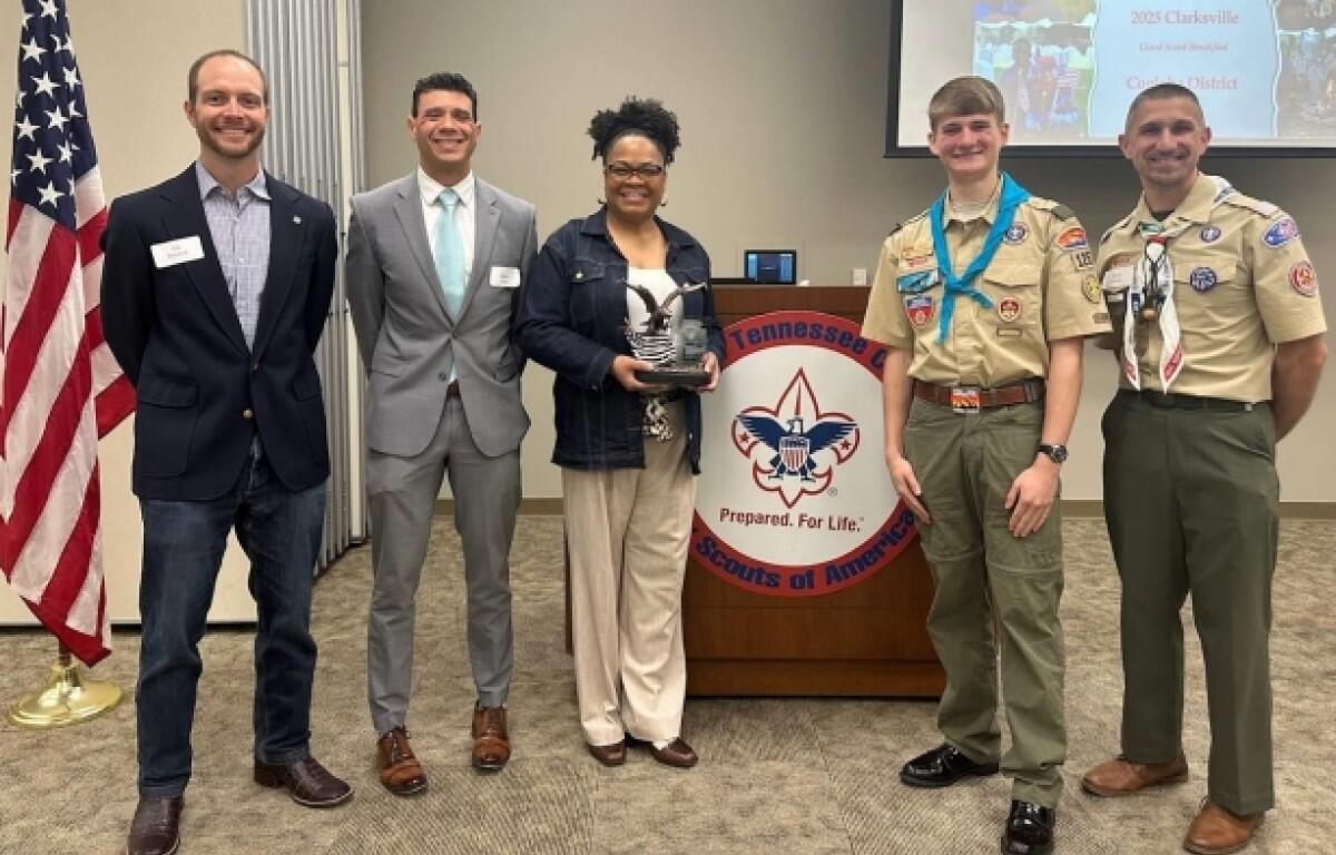 CLARKSVILLE, TN − The Middle Tennessee Council hosted the 2025 Cogioba Good Scout Award Breakfast at William O. Beach Civic Hall on Feb. 27. Each year, the event honors an outstanding local leader who exemplifies the values of Scouting and has made significant contributions to their community. Valerie Guzman was this year’s Good Scout Award Recipient.
