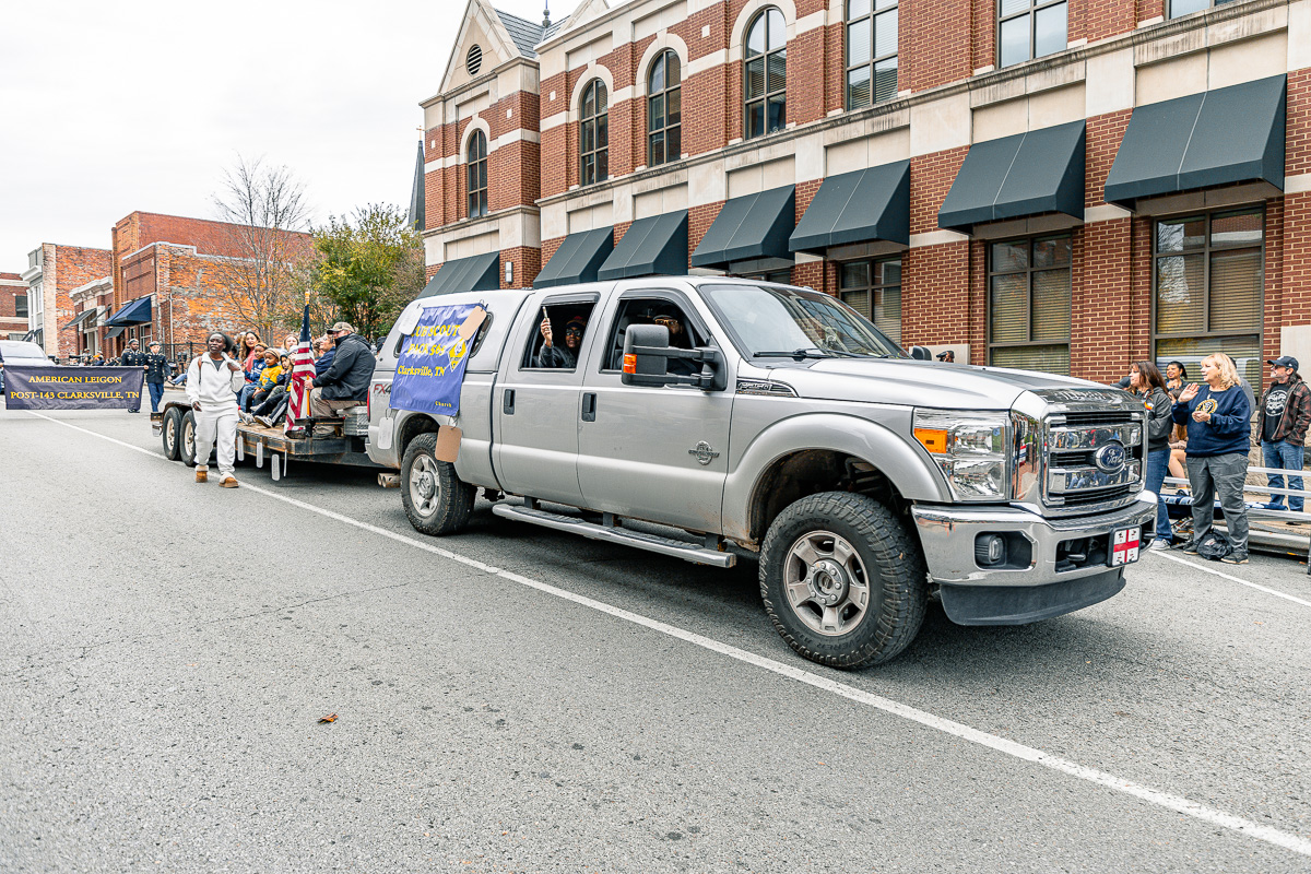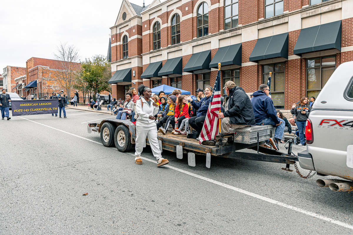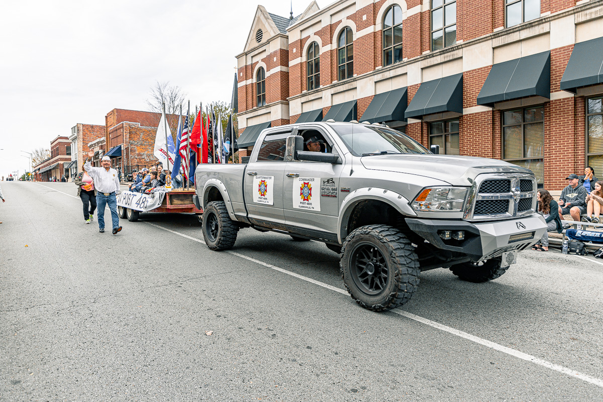 CLARKSVILLE, TN (CLARKSVILLE NOW) – The community gathered downtown Saturday to honor veterans, starting the day with the annual Veterans Day ceremony, followed by the parade. The parade had over 70 entrants this year, including dozens of vehicles, trailers, and floats.