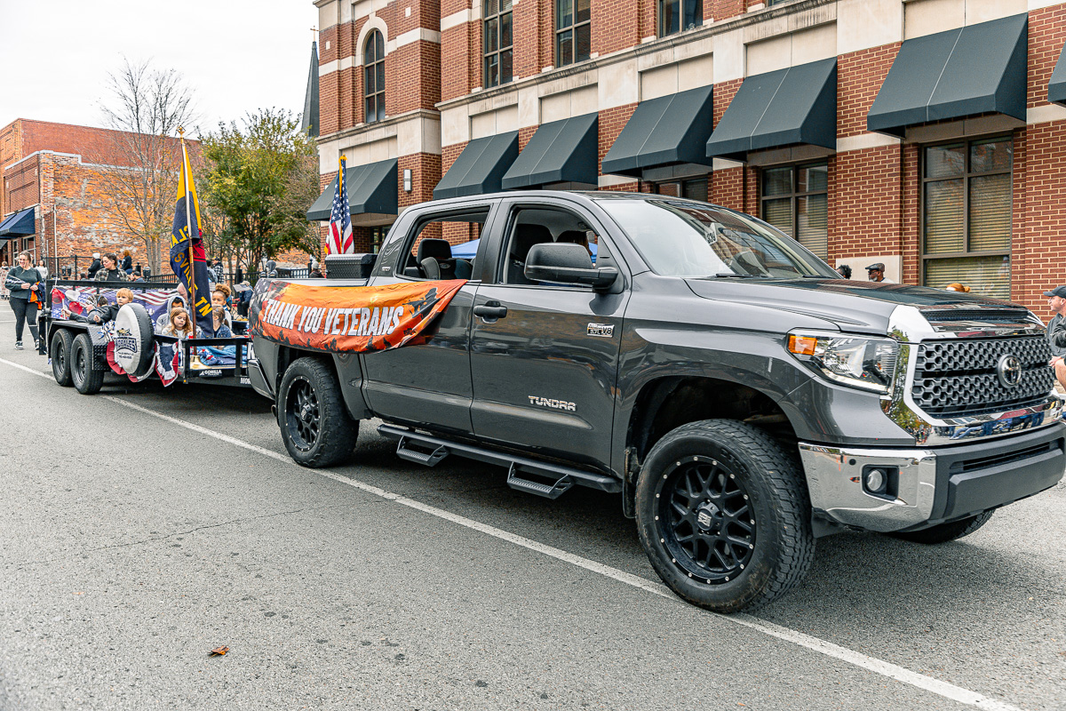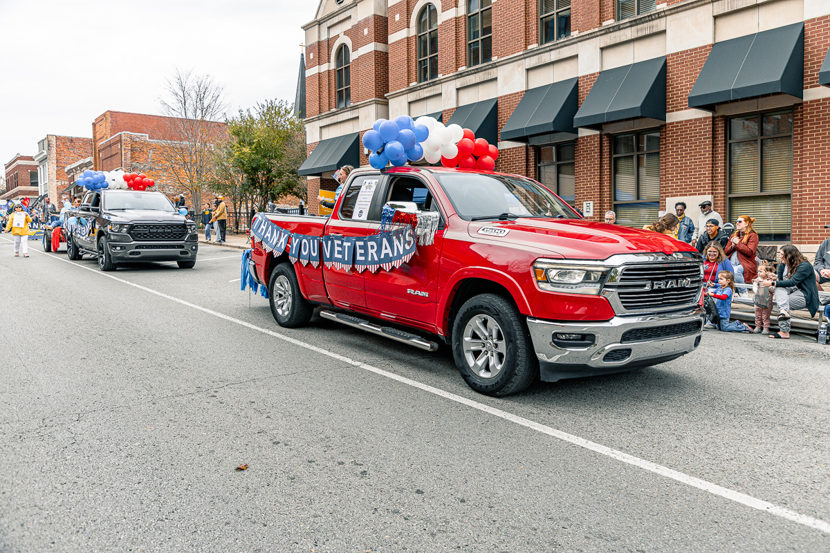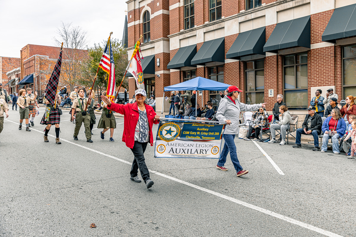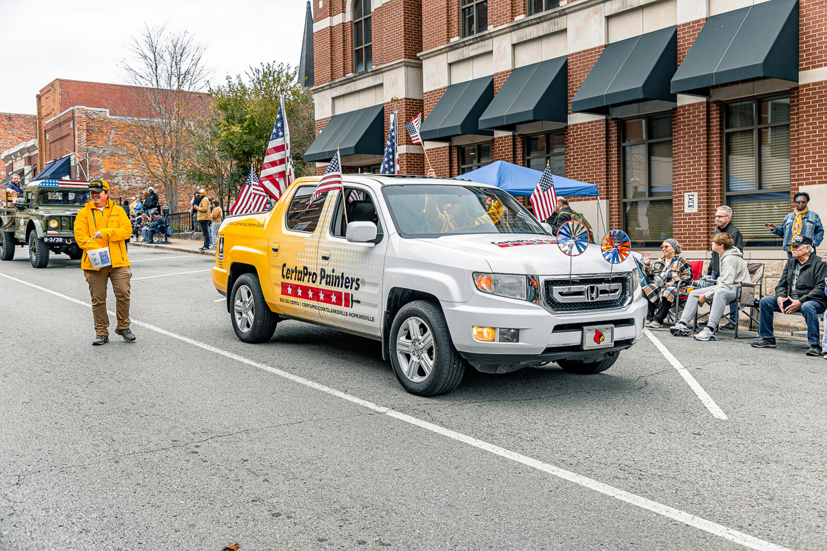 CLARKSVILLE, TN (CLARKSVILLE NOW) – The community gathered downtown Saturday to honor veterans, starting the day with the annual Veterans Day ceremony, followed by the parade. The parade had over 70 entrants this year, including dozens of vehicles, trailers, and floats.