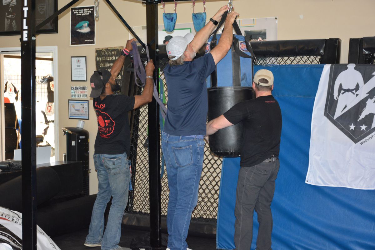 Fifteen staff members from Veterans United, the nation’s No. 1 VA home purchase lender, pitched in for about four hours of handiwork and renovations to help Donnie Bowen and his wife, Michelle, at their dojo on Progress Drive, as a way to say thank you to Bowen for his service.