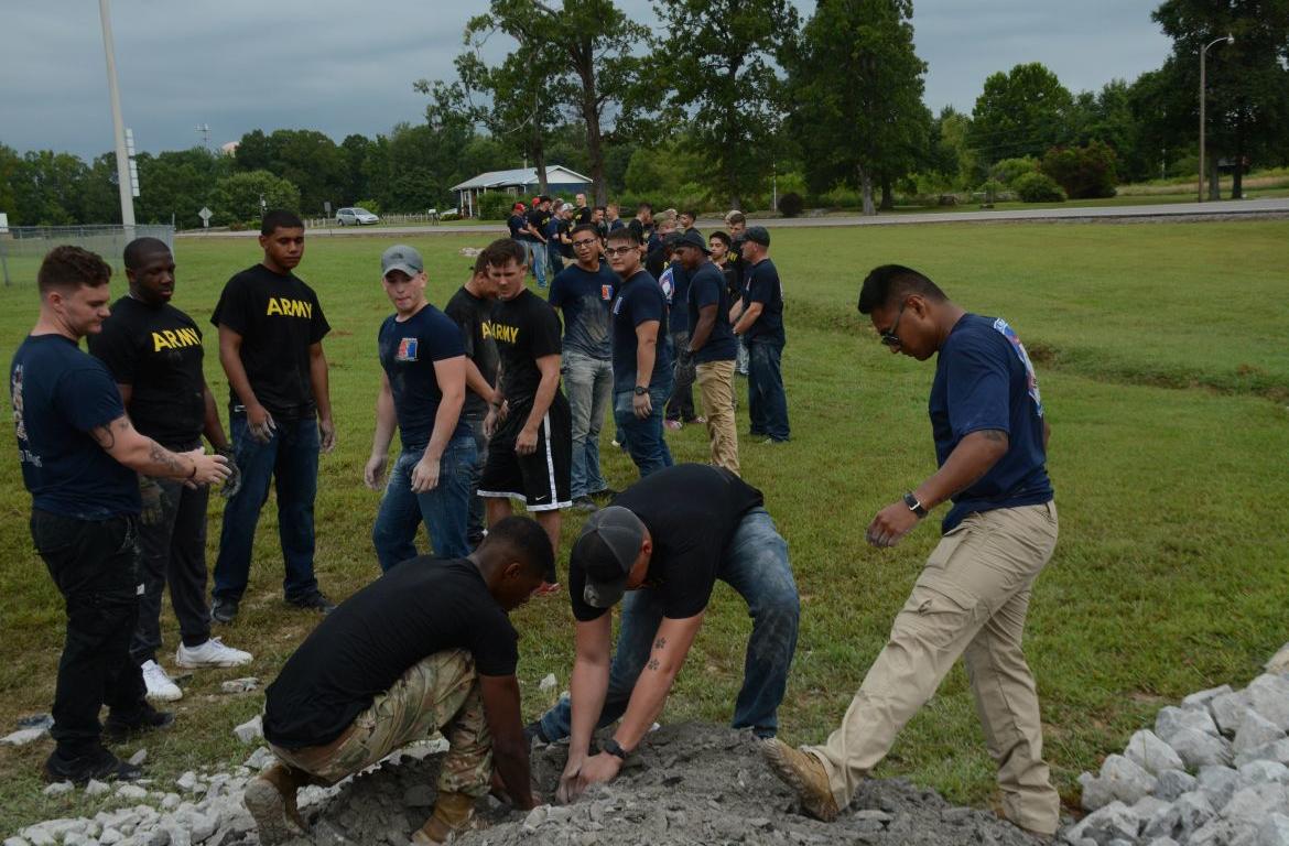 Smith also joked that their volunteer work at Woodlawn Park would be a good team building exercise for the infantry company, adding, “We’re just really grateful for this opportunity to come out [and] do some service as a company…It’s a great opportunity to serve.”