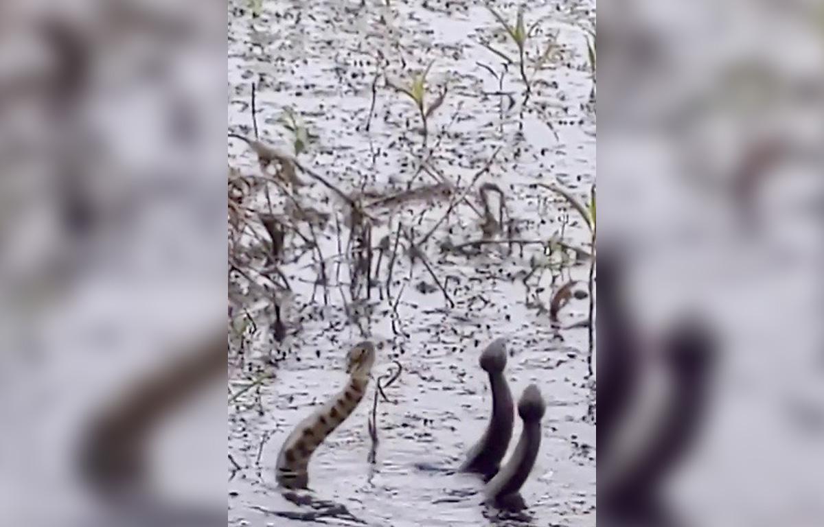 The three cottonmouths are males, and the winner claims a valuable prize: the right to mate with a nearby female.
