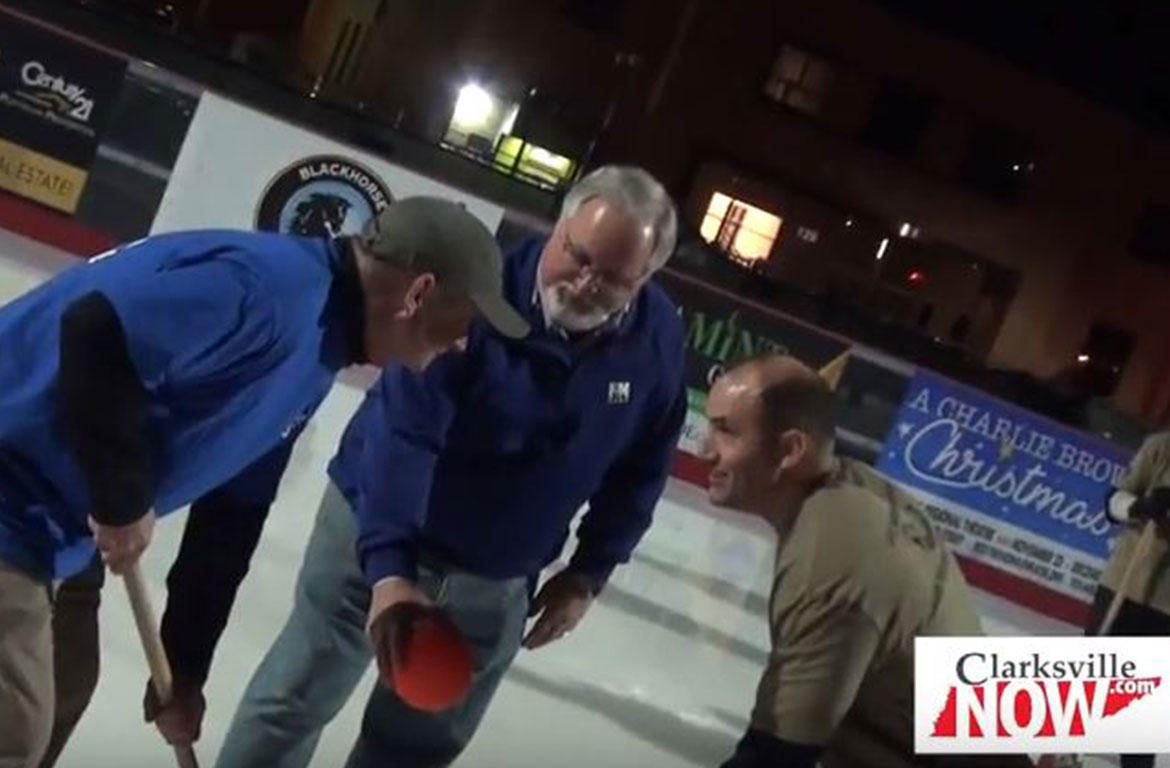 CLARKSVILLE, Tenn. (CLARKSVILLENOW) – Montgomery County Mayor Jim Durrett challenged Fort Campbell’s Major General Andrew Poppas to a broomball game on January 10 at the Downtown Commons outdoor ice skating rink.