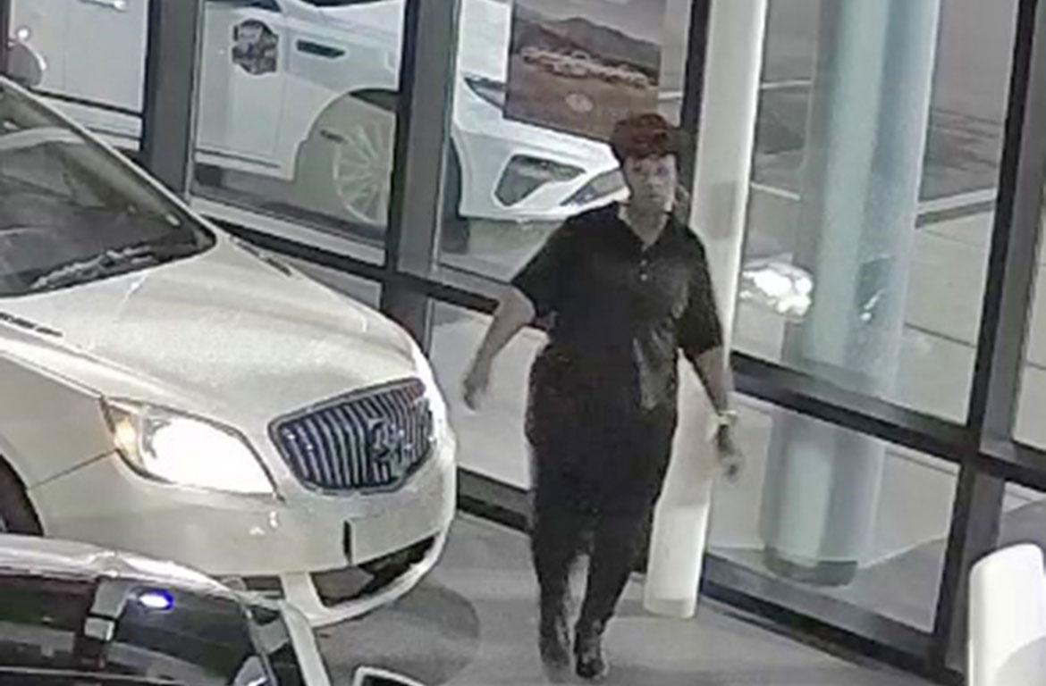Police said the female driver of a Buick was captured on surveillance video sitting in the parking lot of the car dealership around 3:40 a.m. She then drove the car through the glass doors around 4:04 a.m. After crashing through the doors the vehicle struck a 2018 Kia Stinger on the floor of the showroom.