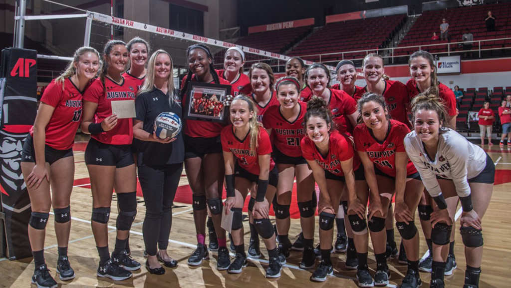 CLARKSVILLE, Tenn. – (CLARKSVILLENOW) Special teams work carried the day as Austin Peay State University’s volleyball team became the fourth NCAA Division I team to 20 wins this season with a four-set Ohio Valley Conference victory (25-15, 25-14, 13-25, 25-19) against Belmont, Thursday night.
