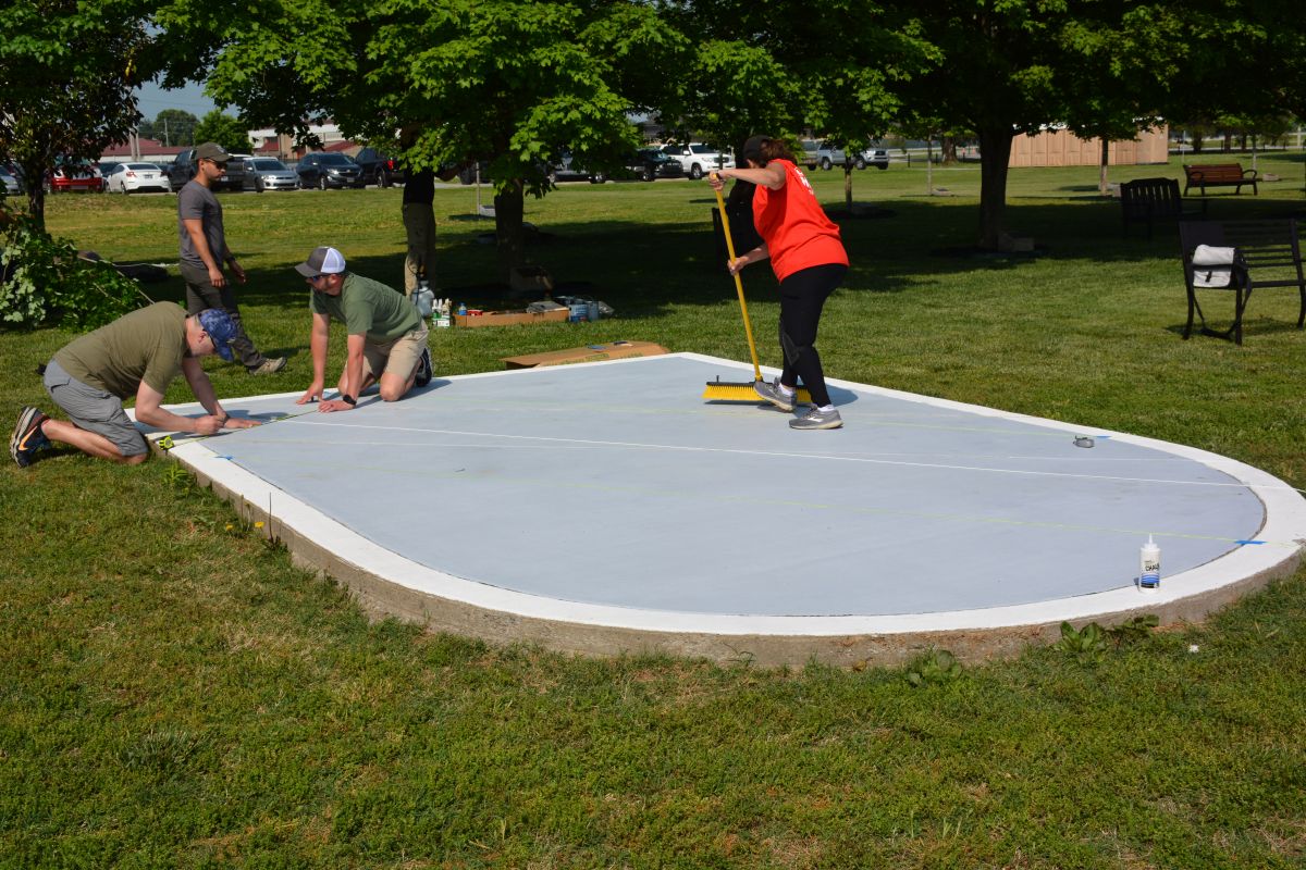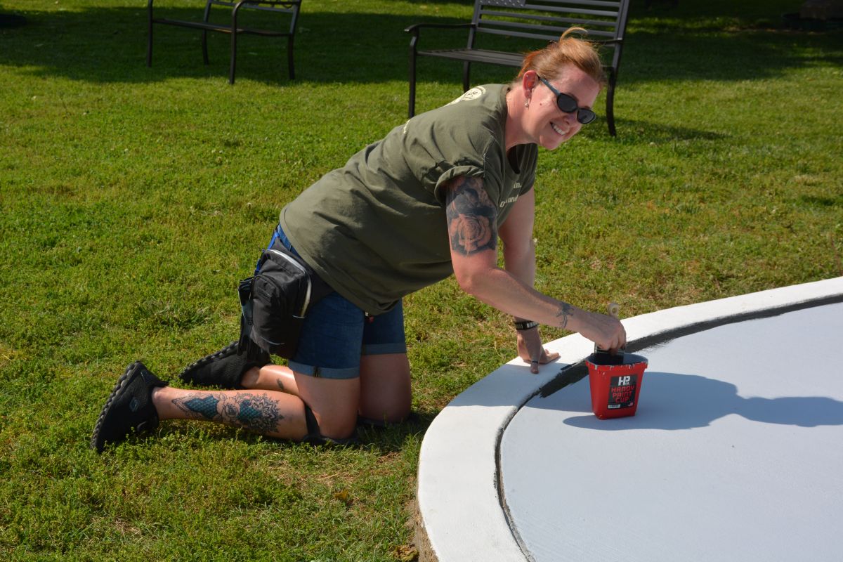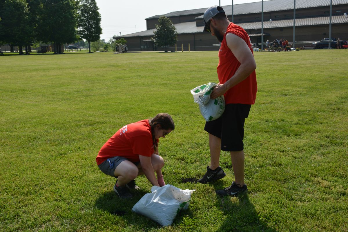Volunteers work at Gabriel Field on Fort Campbell to spruce up the site for the 5th Special Forces Group (Airborne) and their upcoming Memorial Day ceremony, May 12, 2022 (Lee Erwin)