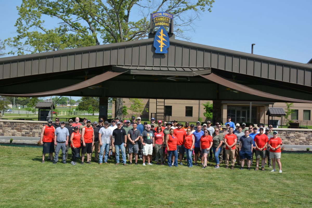 FORT CAMPBELL, KY (CLARKSVILLE NOW) – Gabriel Field at Fort Campbell, a memorial park for 5th Special Forces Group soldiers, got some beautification help from close to 80 volunteers on May 11 and 12.