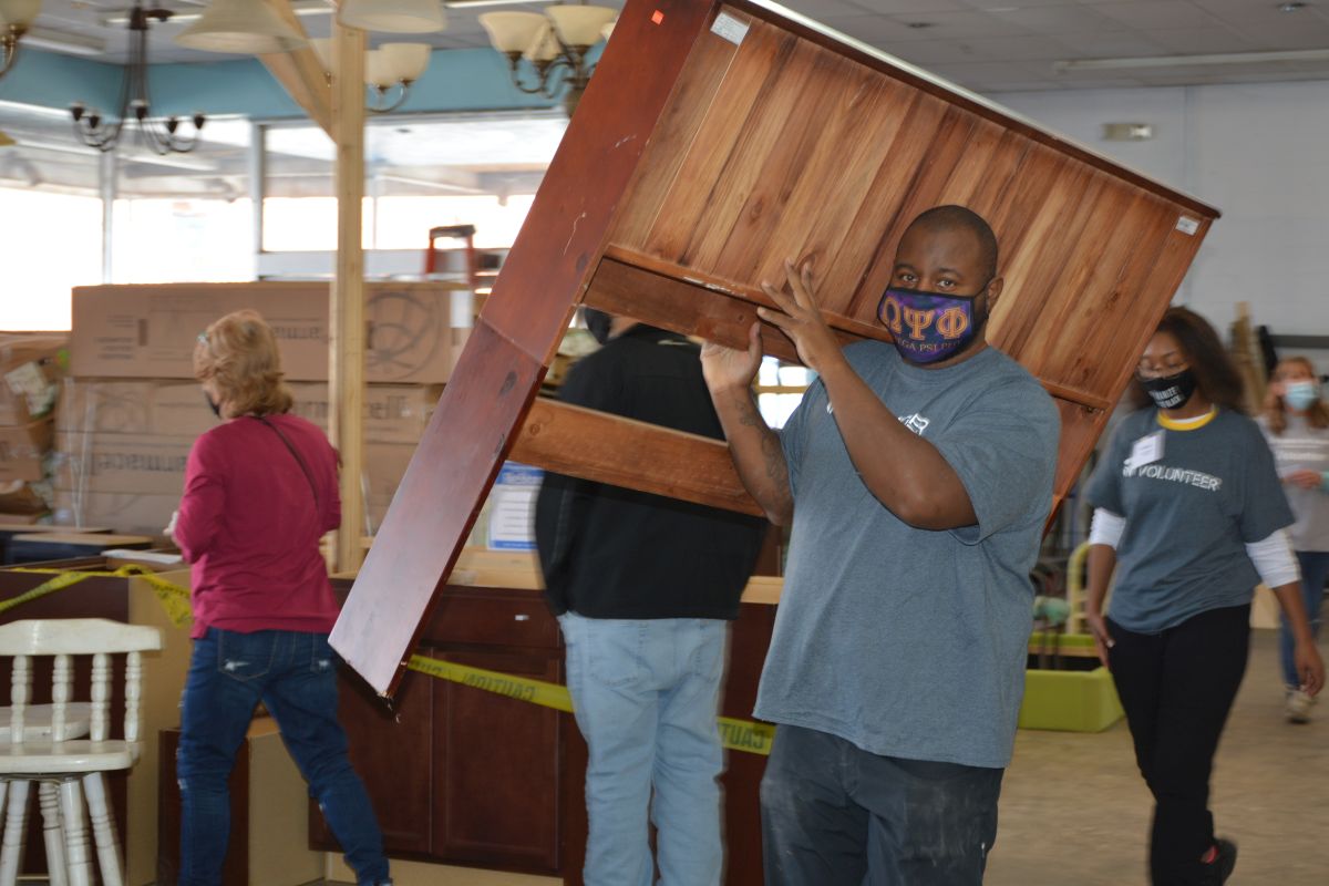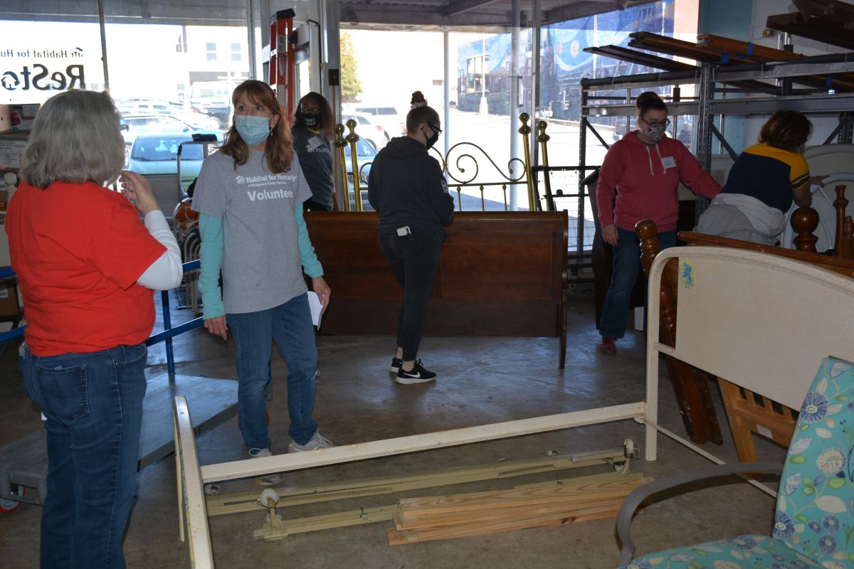 The volunteers helped with tasks like cleaning, straightening and rearranging items in the ReStore to make more room for other merchandise. Areas like the ReStore Community Room and other rooms received new paint and other touch-ups.