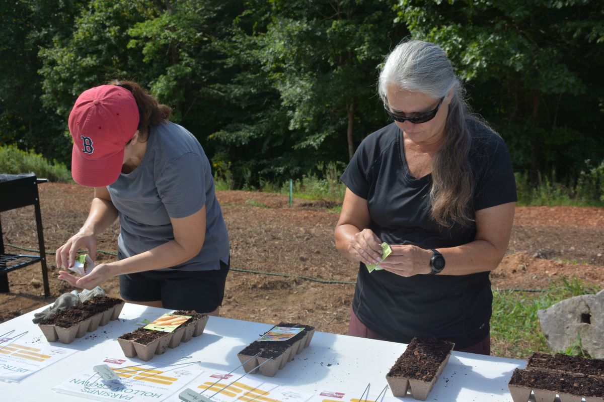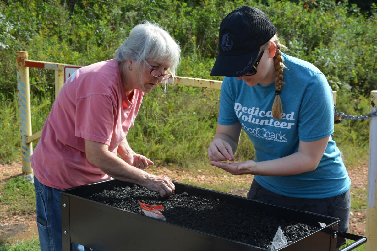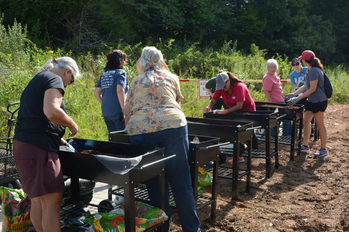 Volunteers help with the planting of seeds at the Montgomery County Community Garden in Rotary Park on, Sep. 3, 2022. (Lee Erwin).