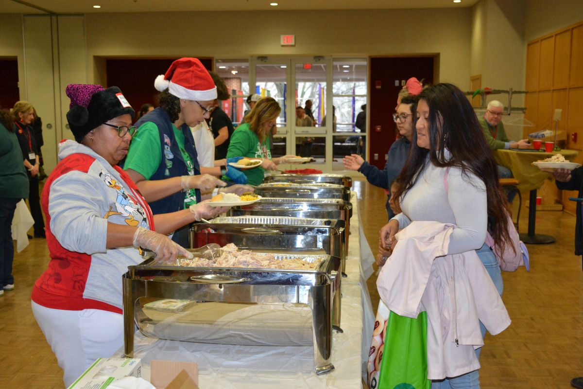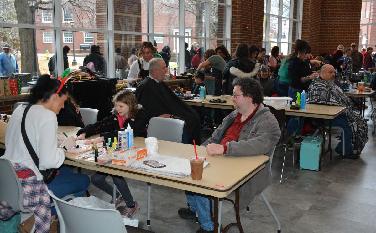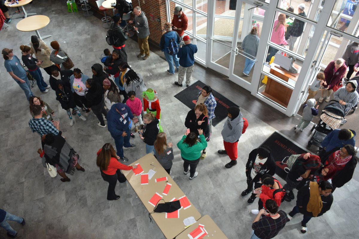 The three-hour event hosted 300 families with a line people waiting to get in stretching the length of the university center, while volunteers made their way through the crowd passing out coffee and hot chocolate. As it has in years past, the event offered a family meal, family portraits, haircuts, gifts, toys, winter clothing, and more, all with the support of more than 300 volunteers.