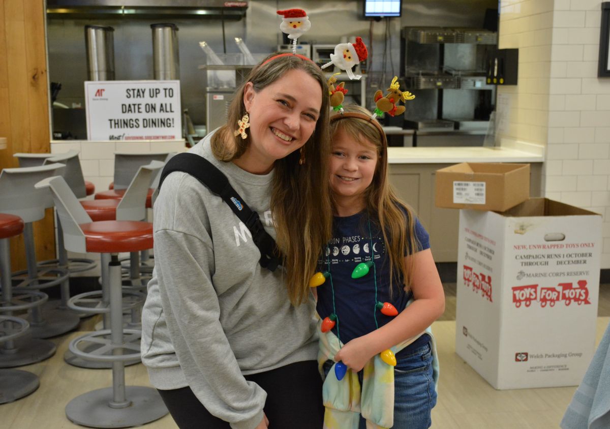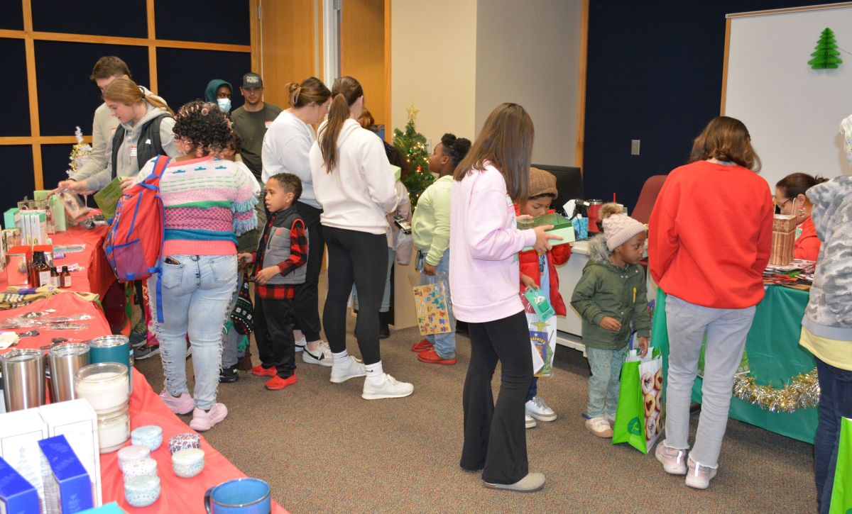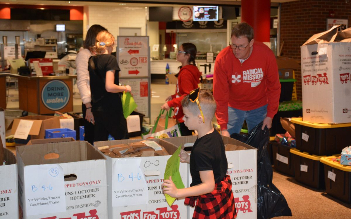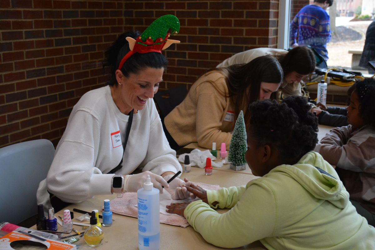 The three-hour event hosted 300 families with a line people waiting to get in stretching the length of the university center, while volunteers made their way through the crowd passing out coffee and hot chocolate. As it has in years past, the event offered a family meal, family portraits, haircuts, gifts, toys, winter clothing, and more, all with the support of more than 300 volunteers.