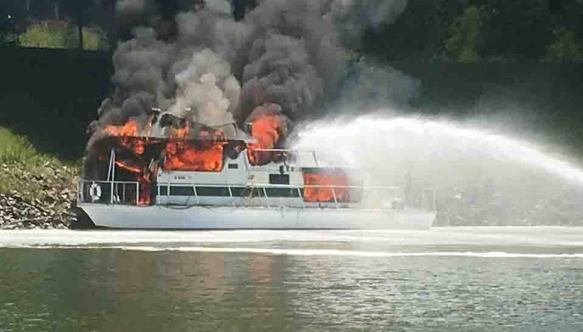 The Workmans donned their life vests and safely abandoned ship, which quickly became fully engulfed with flames. Clarksville Fire Rescue arrived on scene and put out the fire.
