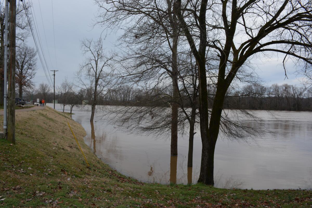 At 7:30 a.m. Monday, the river stage was 34.79 feet and rising. Flood stage is 30.0 feet.