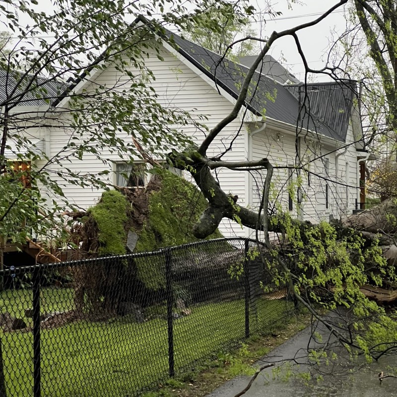 Some of the wind gusts were recorded at 53 mph, he said. One home was damaged by a tree falling on it.