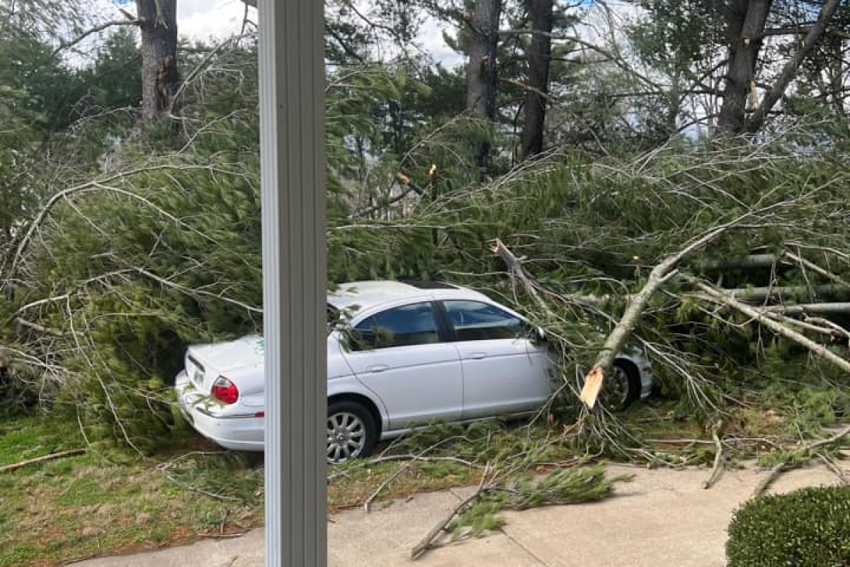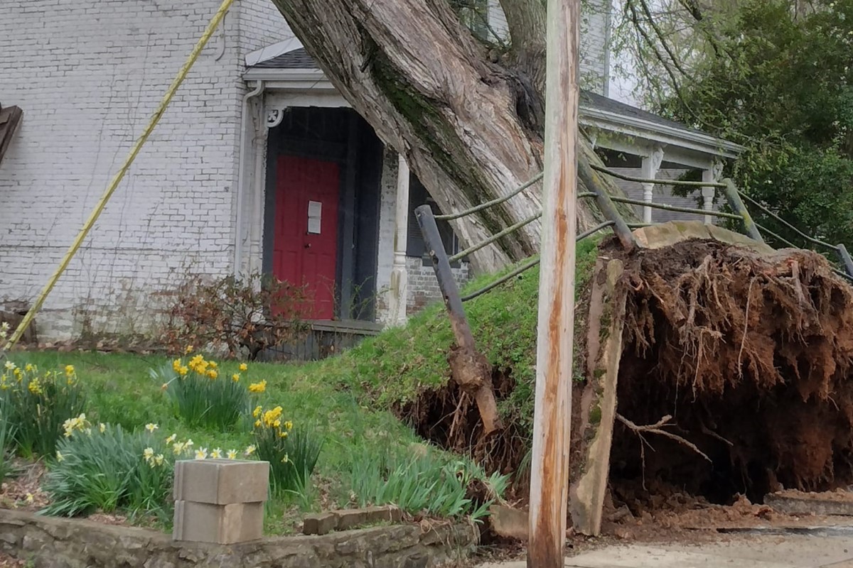 Update, 1:50 p.m.: Trees are down all over the city and county, and the power outages are affecting the 911 Center as well.