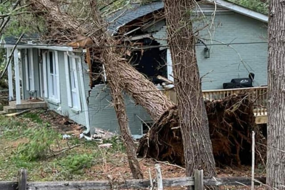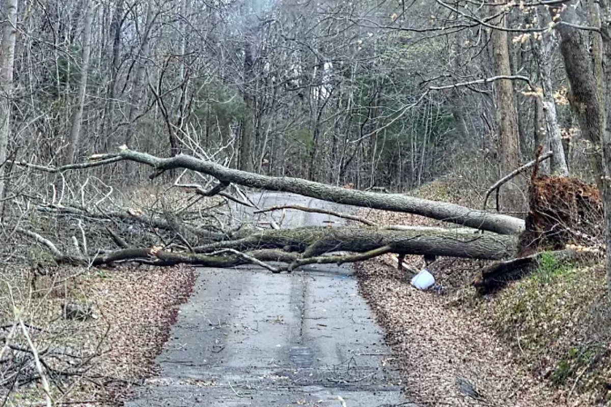 Several roads across the city and county are blocked by trees. Residents are urged to stay off the roads as crews try to clear the streets.