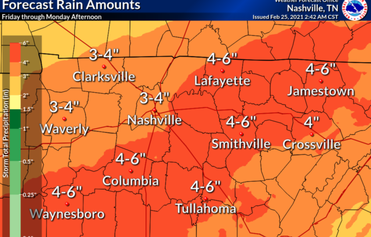 Clarksville could get 4 inches of rain from Friday through Monday, according to the National Weather Service.