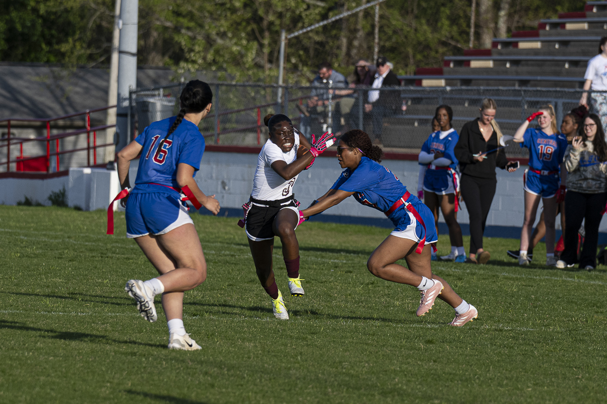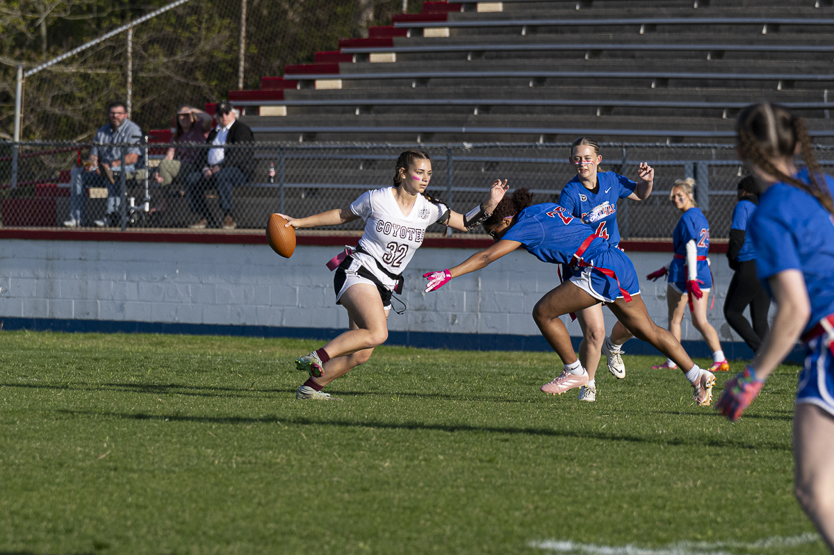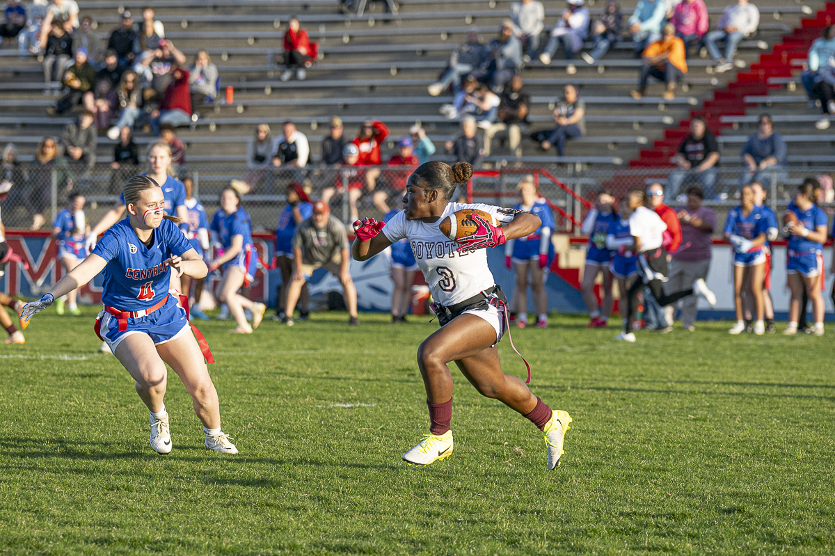 The West Creek Coyotes traveled across the river to Montgomery Central High School for a rematch of last year’s flag football city championship, with the number one seed and an undefeated season on the line for both teams.