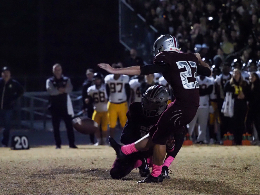 Although West Creek had already been eliminated from playoff contention, the boys from Peachers Mill went out with a bang on Senior Night. They toppled the Commandos, 30-21, claiming their first ever win in the 6A classification.