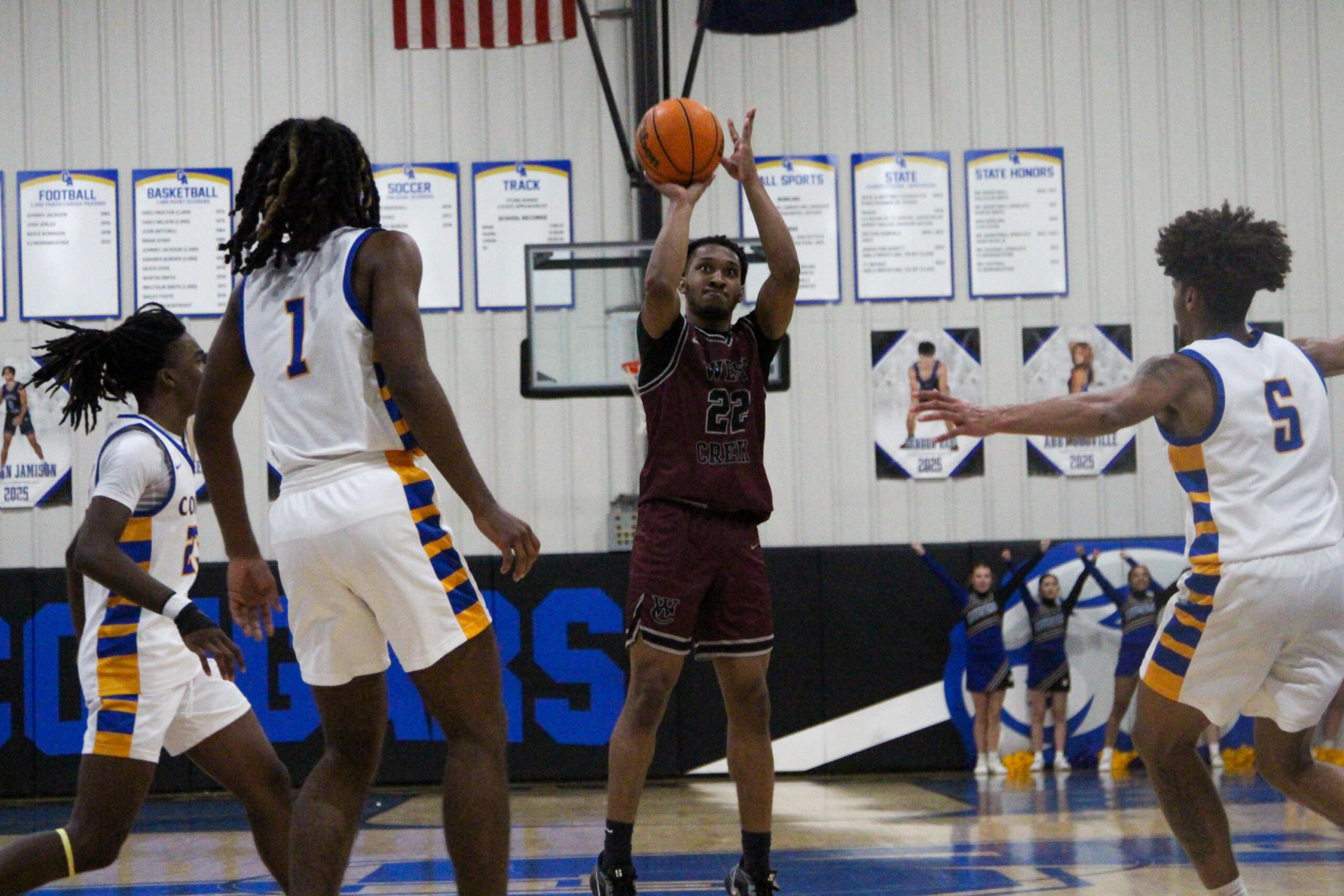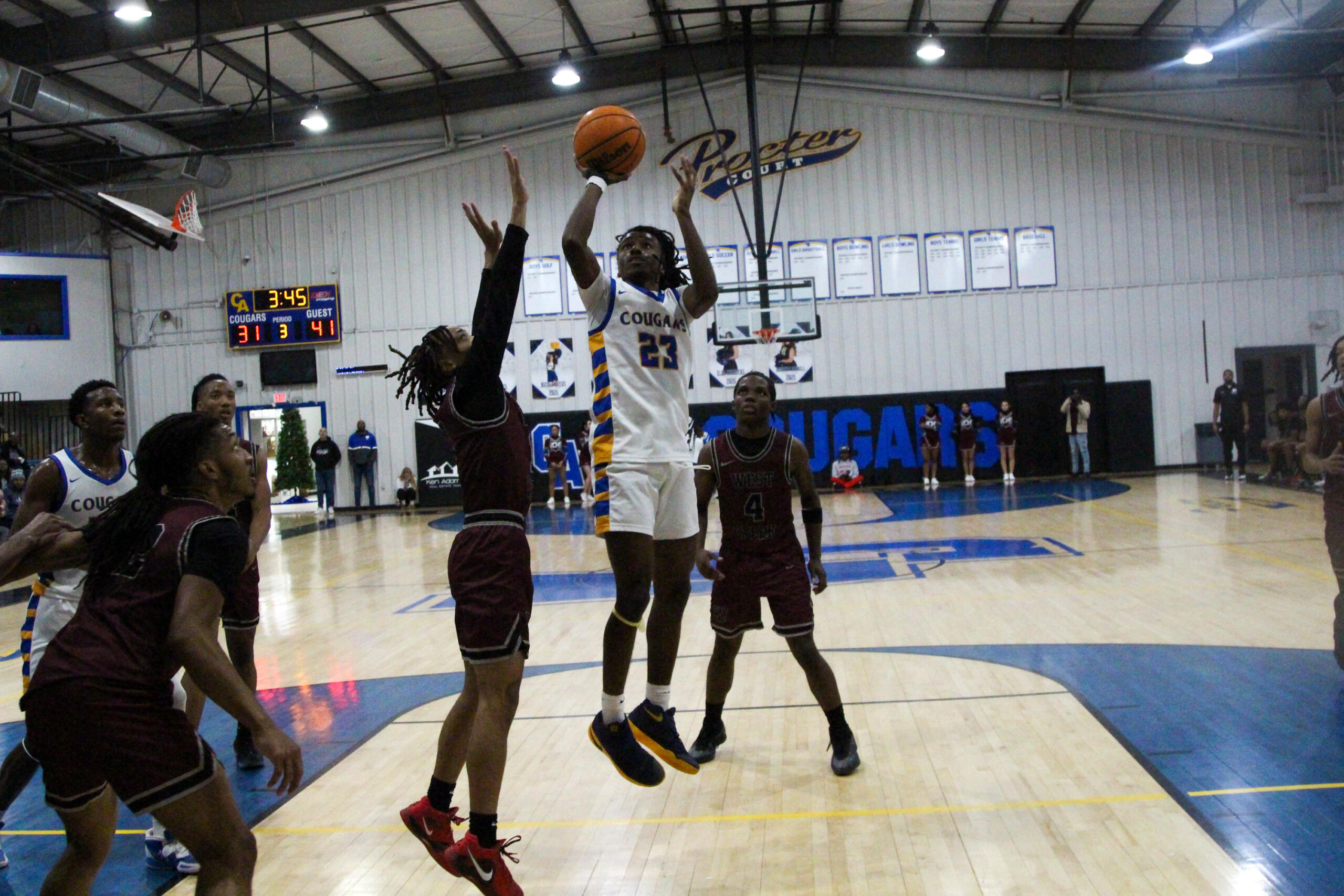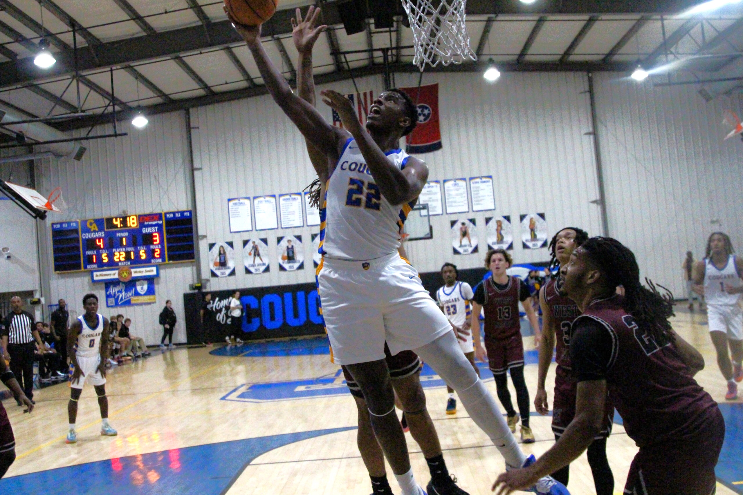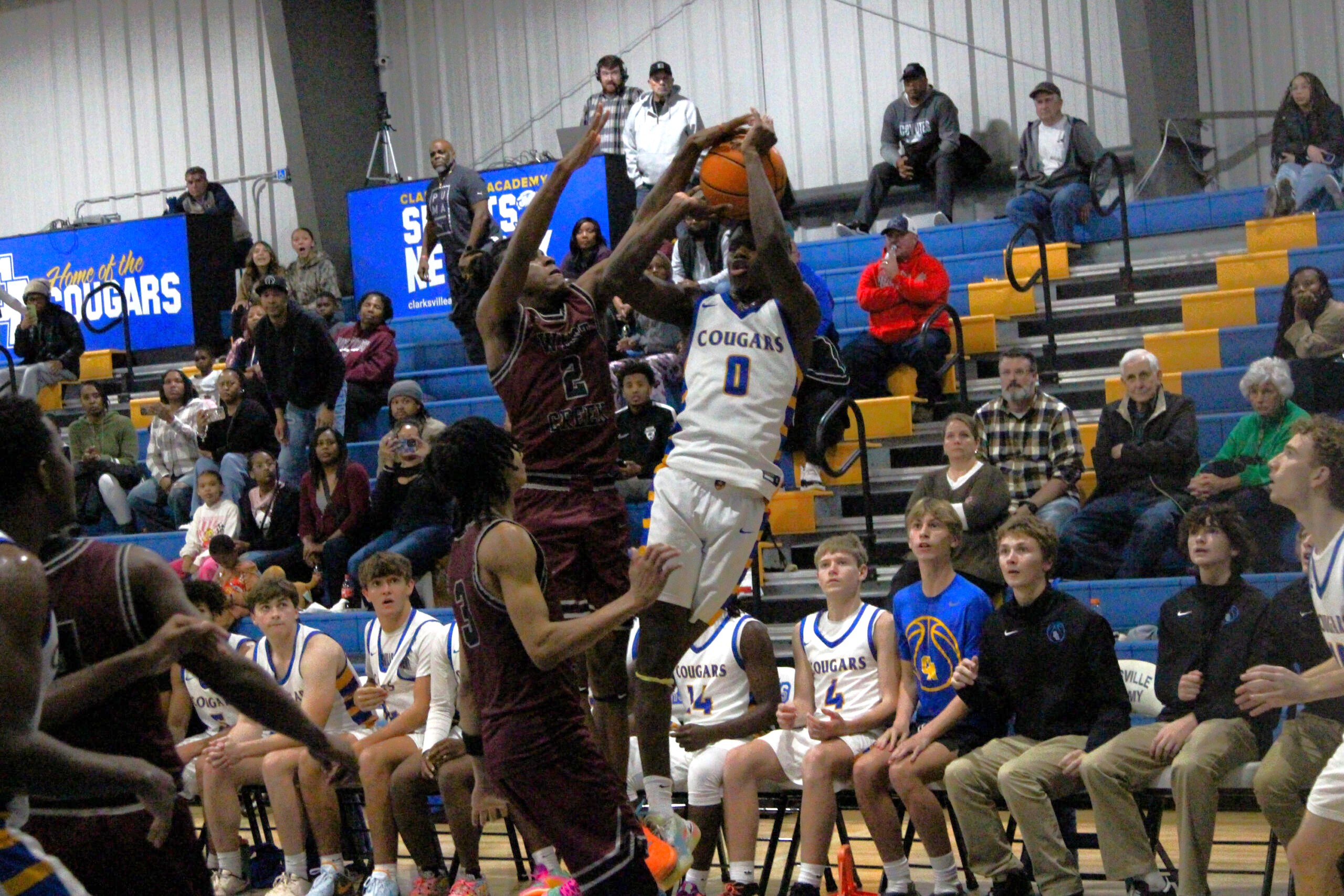CLARKSVILLE, TN (CLARKSVILLE NOW) – The West Creek Coyotes traveled to Clarksville Academy for a matchup with the Cougars. A back-and-forth, energetic battle with a lively crowd went into overtime. Every possession counted, but the Coyotes were able to score when it mattered, winning 69-66 in overtime.