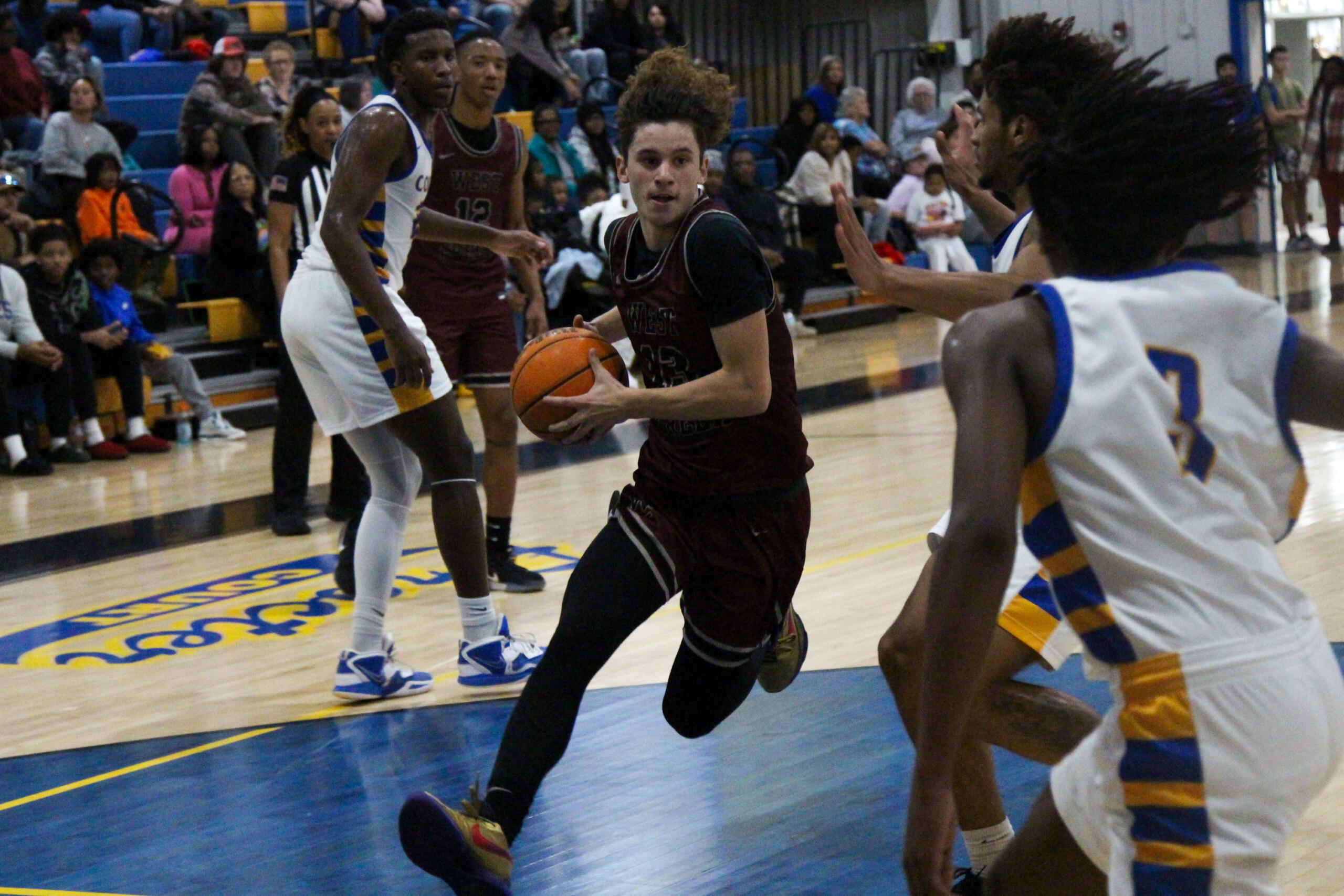 Both defenses were physical and dominant early, with both teams held under their normal scoring averages. The Coyotes were able to get a couple buckets from forward Kamden Hines, and took a 3 point lead at halftime.