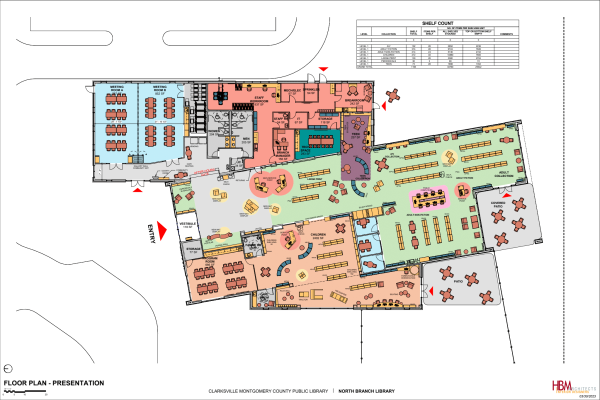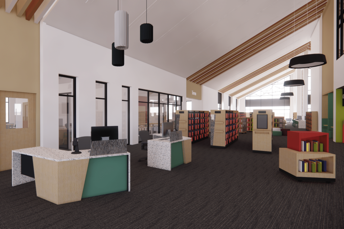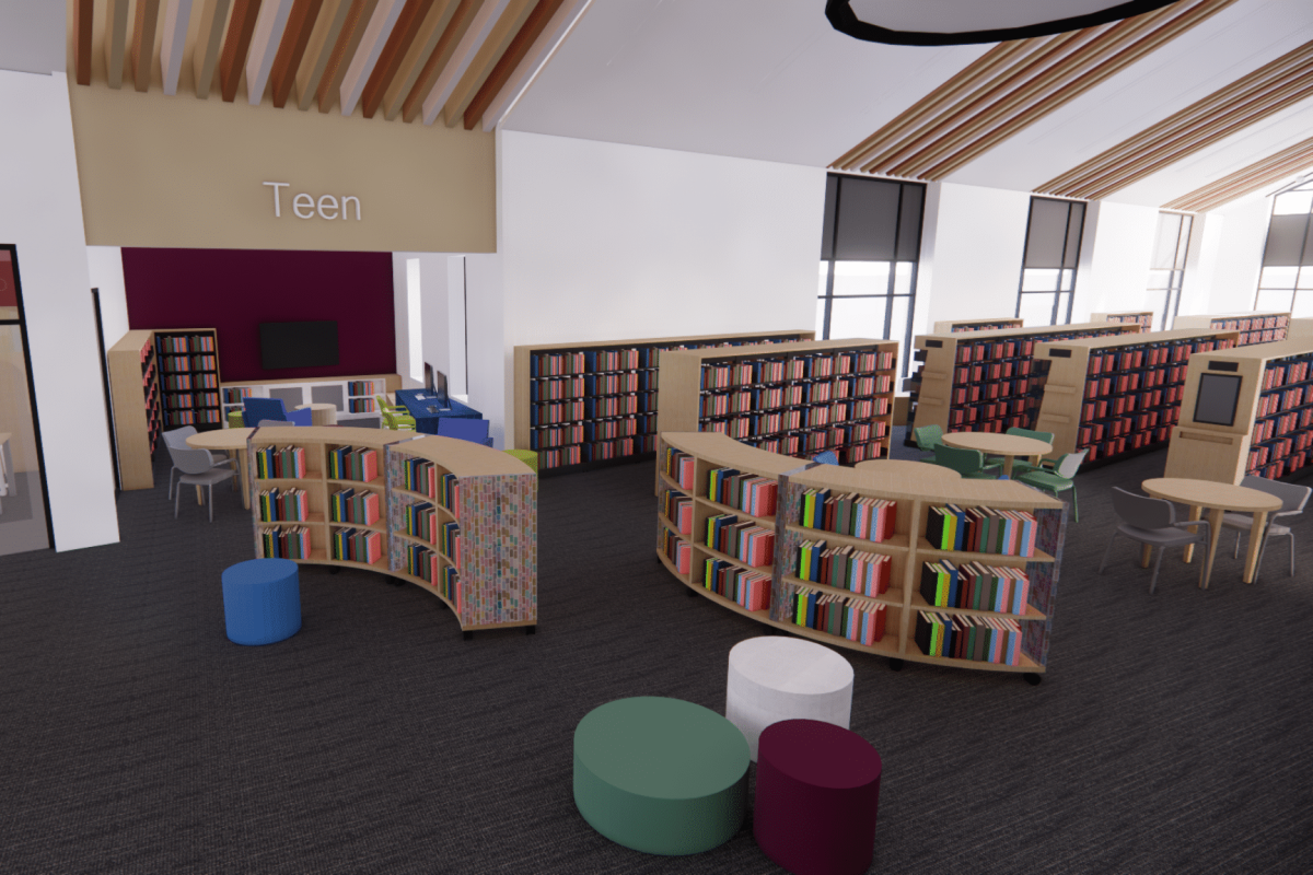 The infrastructure of the library had been downsized due to budget constraints and the timeline, so the library is now estimated to be around 16,000 square feet.