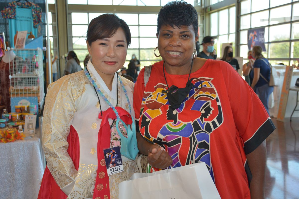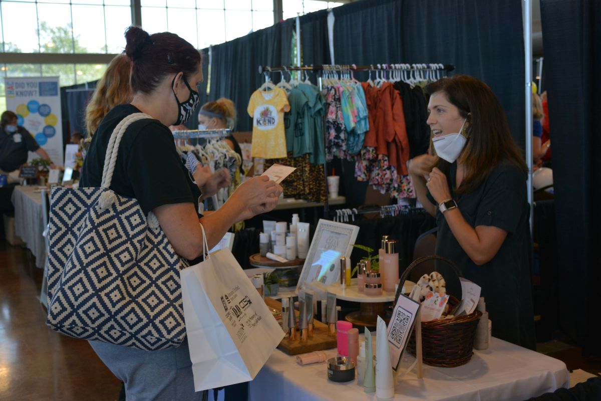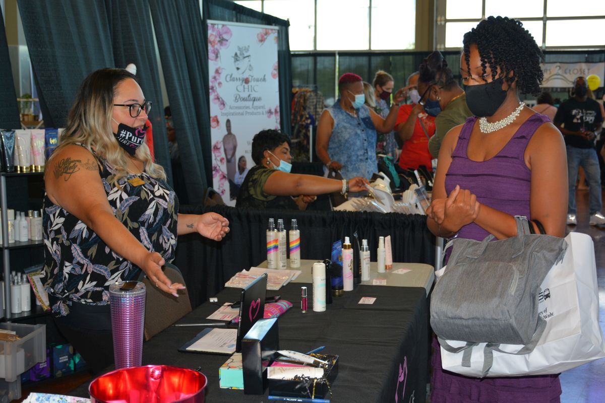 A guest speaks with a vendor at the Women of Clarksville Expo at the Wilma Rudolph Event Center on Sat Aug 28 2021 (Lee Erwin).