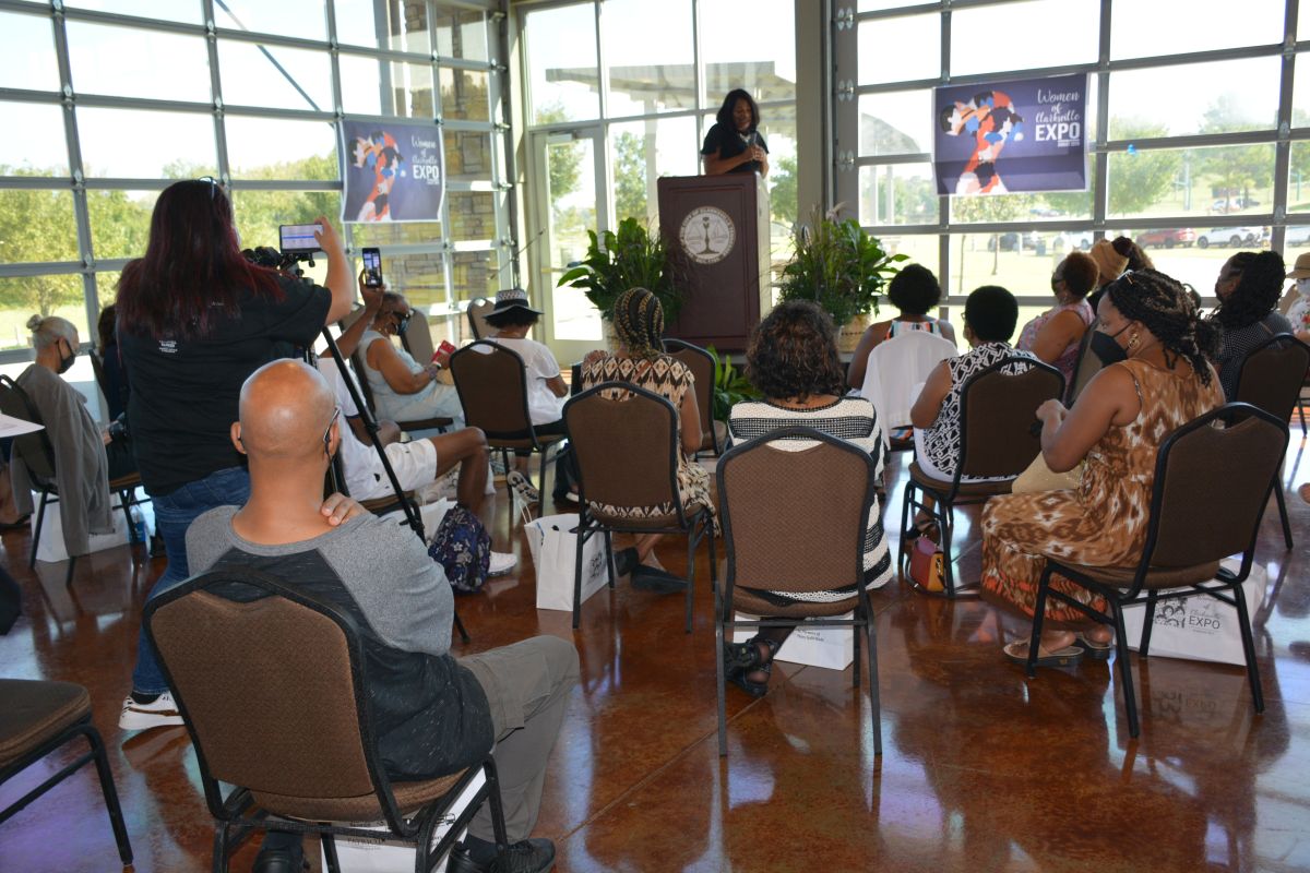 One of the many speakers at the Women of Clarksville Expo at the Wilma Rudolph Event Center on Sat Aug 28 2021 (Lee Erwin).