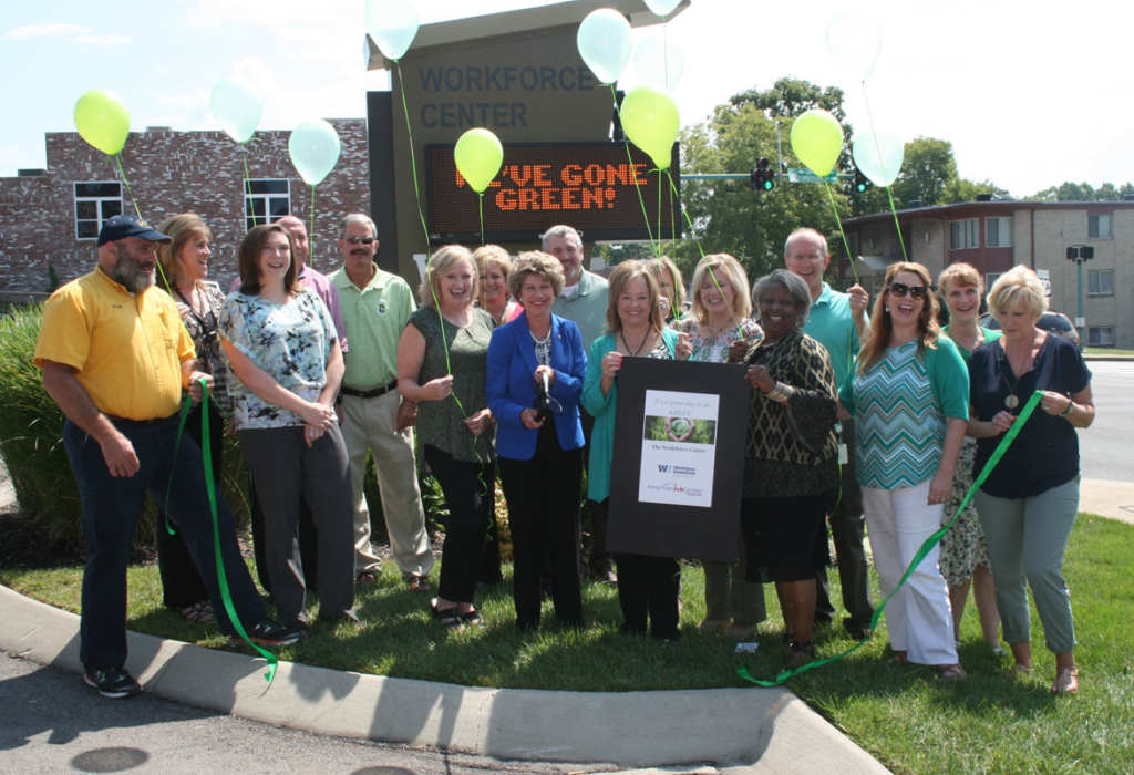 Montgomery County, Tenn. – (CLARKSVILLENOW) Workforce Essentials was recognized Friday as a Clarksville-Montgomery County Green Certified business. City of Clarksville Mayor Kim McMillan; Chamber of Commerce President Melinda Shephard, Bi-County Director David Graham, and CMCGCP Steering Committee members Rose Melton, Daryl Pater, and Tim Swaw were present at the green ribbon cutting to congratulate the Workforce Essentials team on their certification.