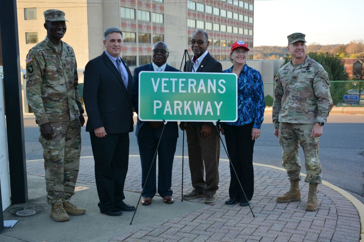VSO Director Andrew Kester said the Veterans Parkway was a joint effort involving the VSO and the City of Clarksville. Signs are placed on Tiny Town Road for the Veterans Parkway, which stretches between Peachers Mill Road and Fort Campbell Boulevard.